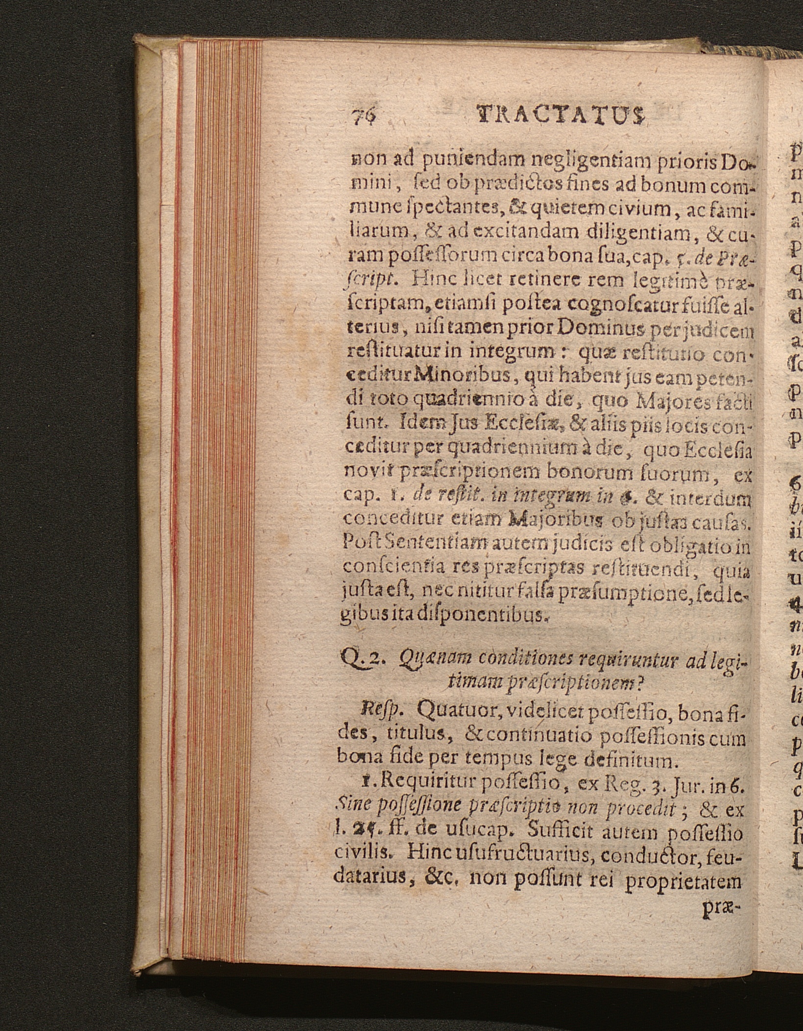 Q. 2. Quænam conditiones requiruntur ad legitimam præsciptionem?