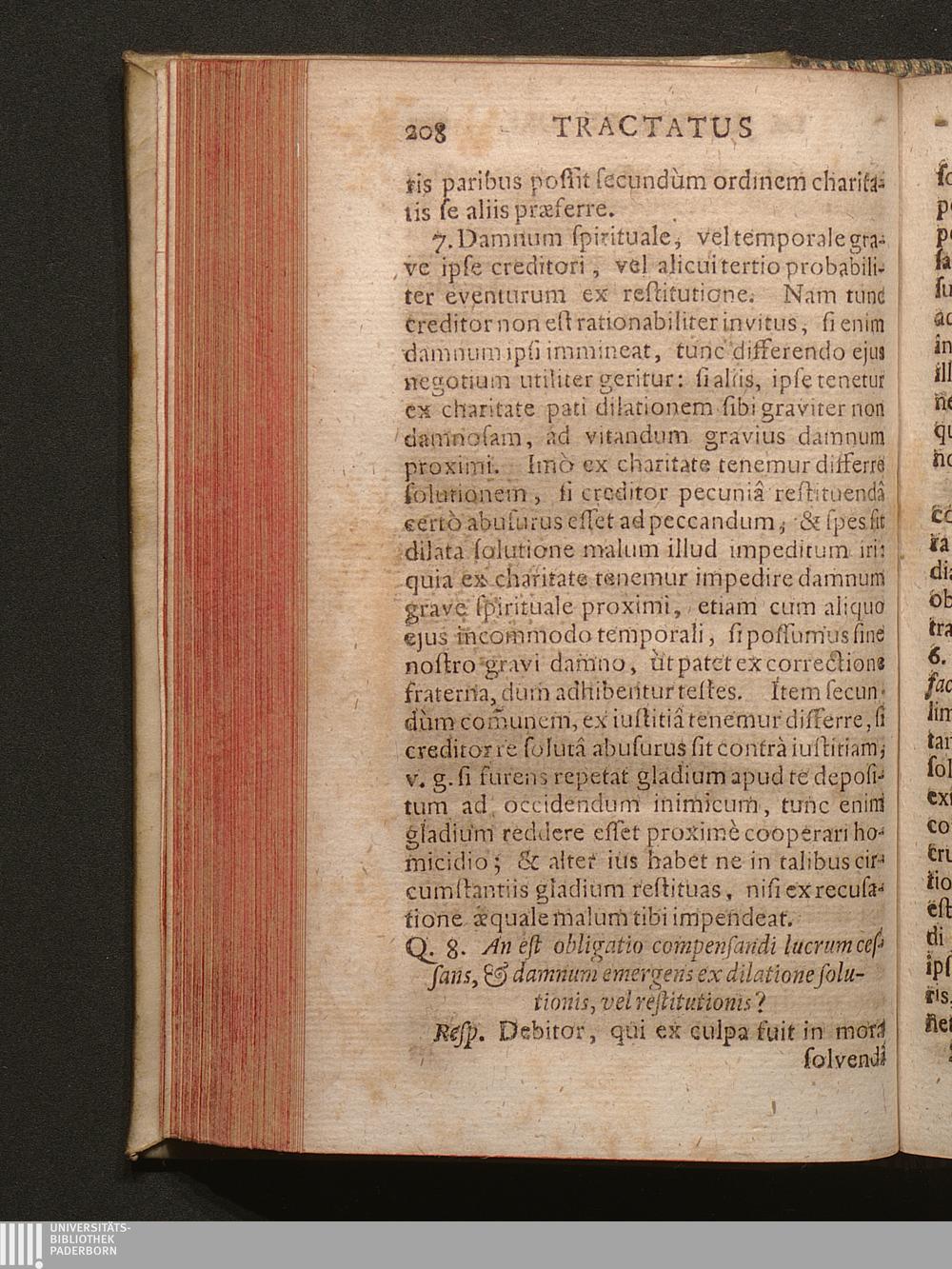 Q. 8. An est obligatio compensandi lucrum cessans & damnum emergens ex dilatione[...]
