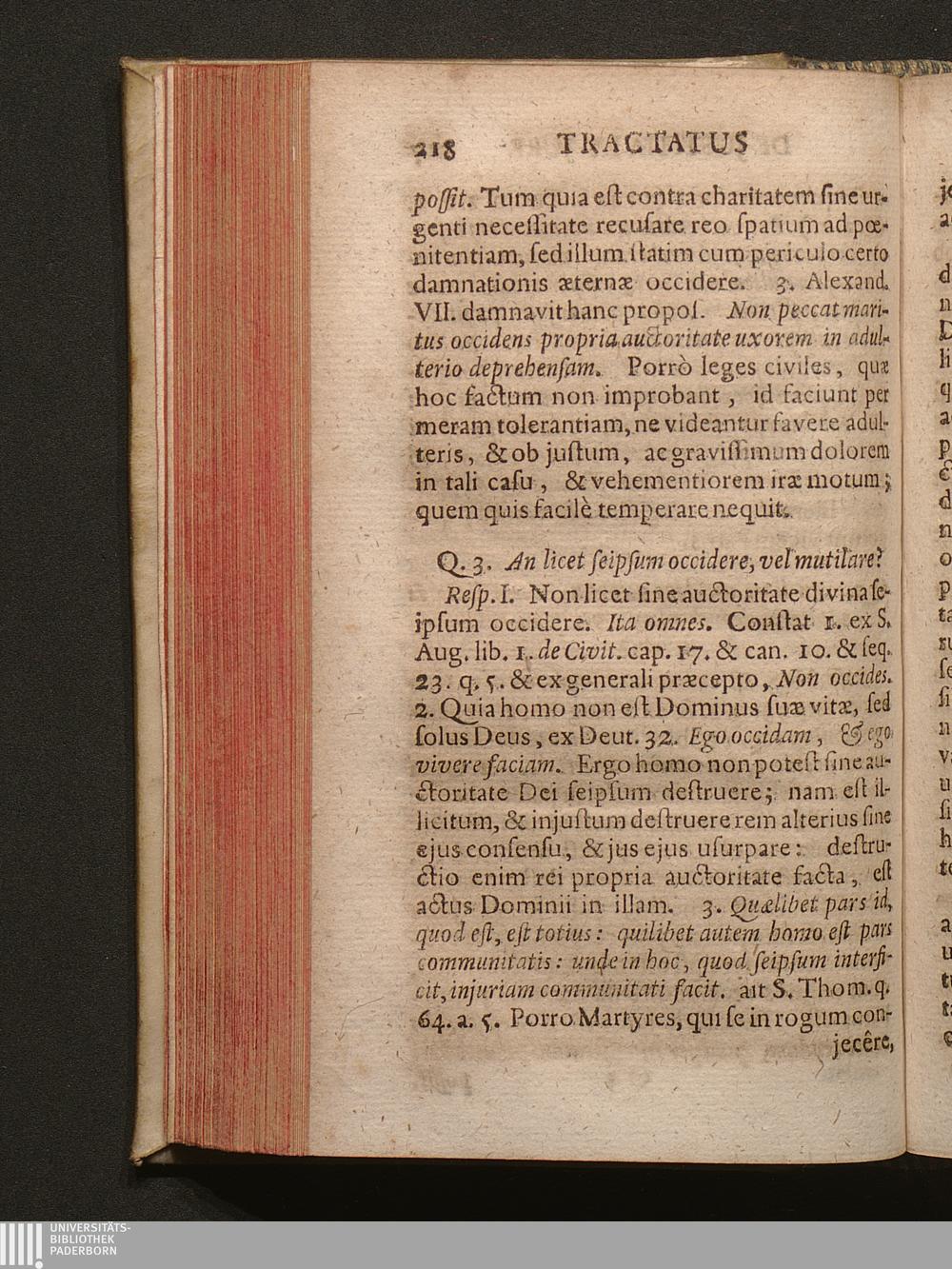 Q. 3. An licet seipsium occidere, vel mutilare?