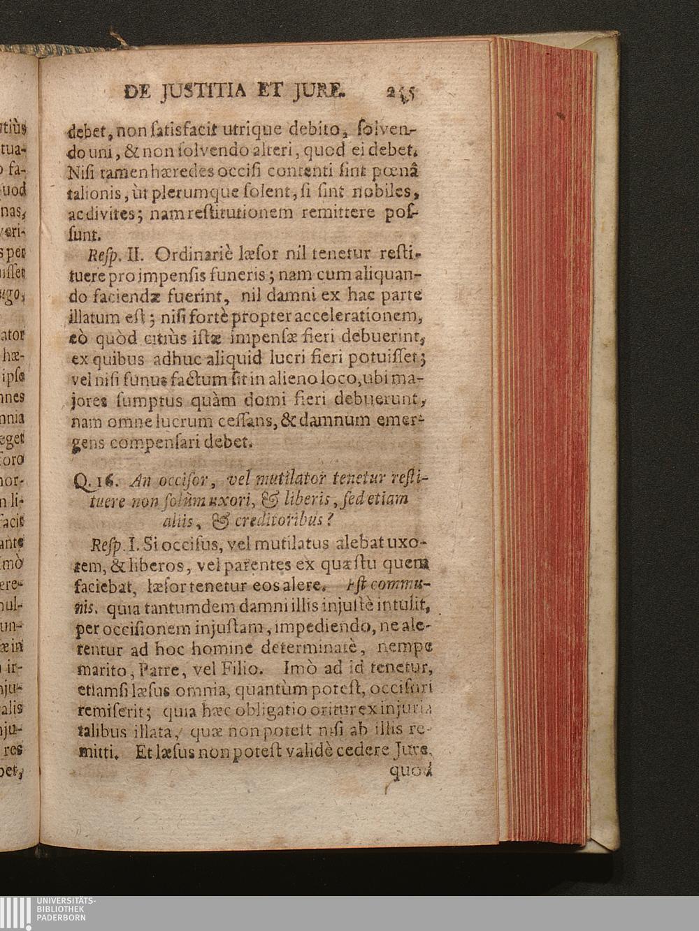 Q. 16. An occisor, vel mutilator tenetur restituere non solùm uxori & liberis, sed[...]