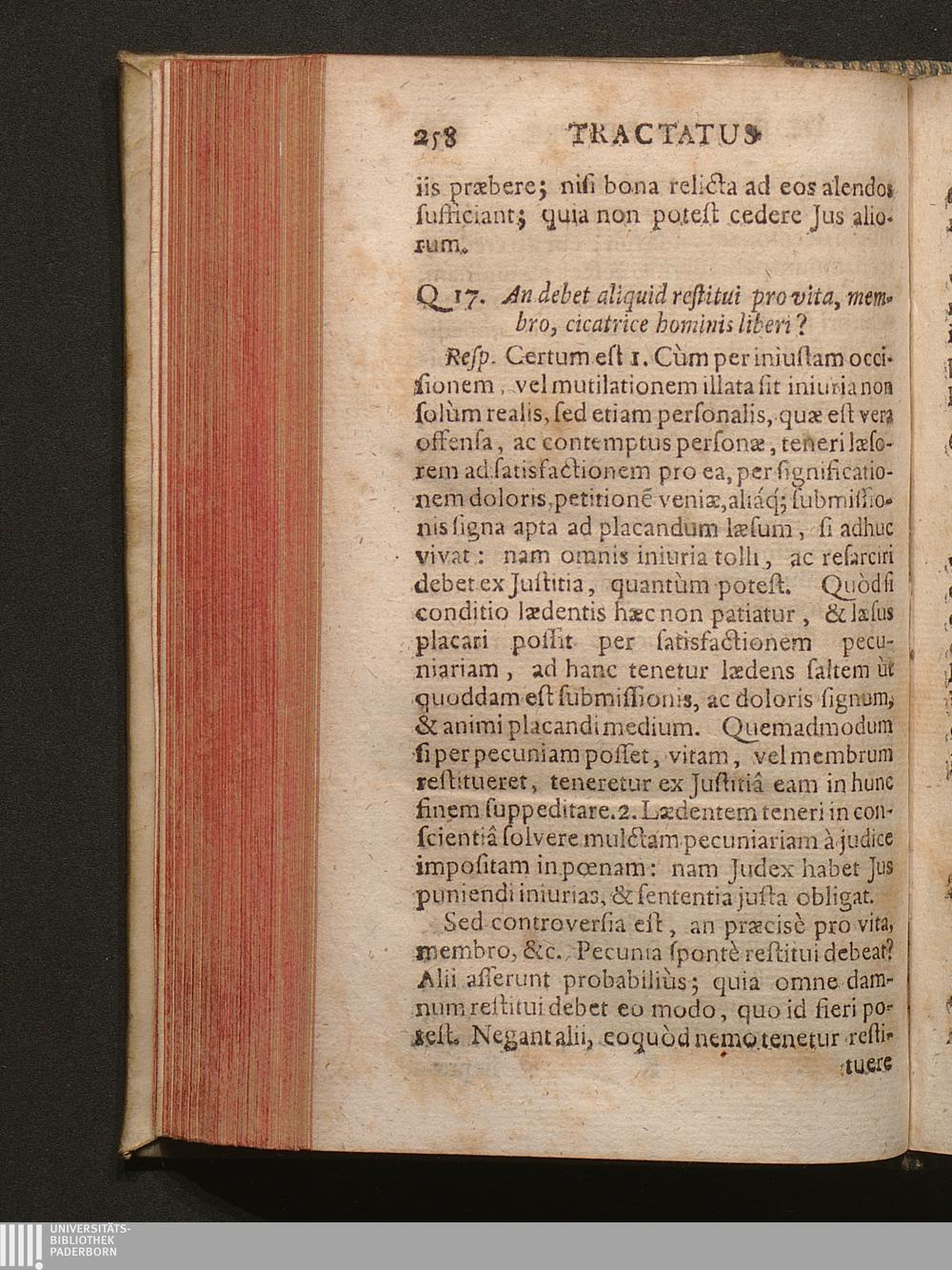 Q. 17. An debet aliquid restitui pro vita, membro, cicatrice hominis liberi?