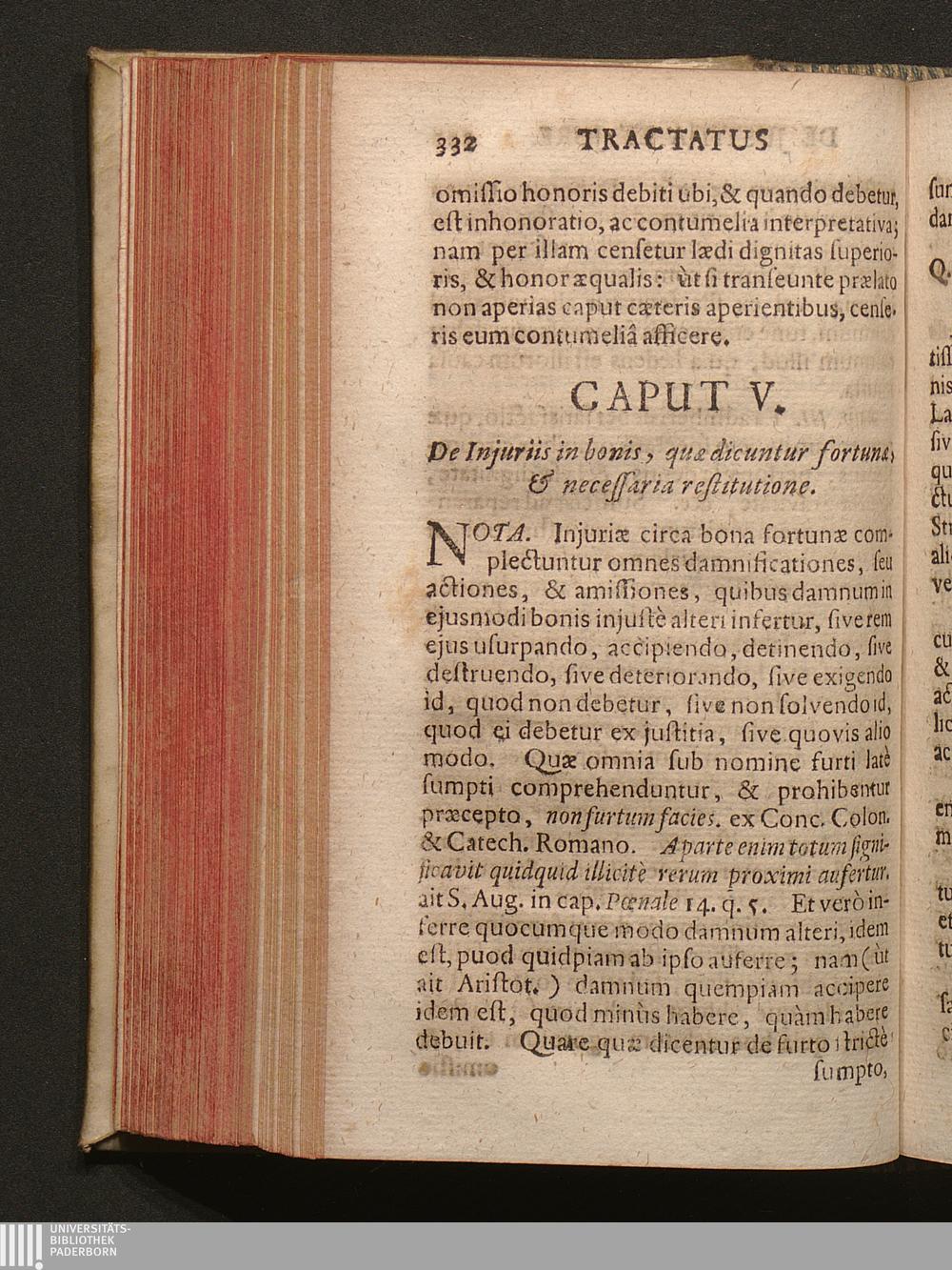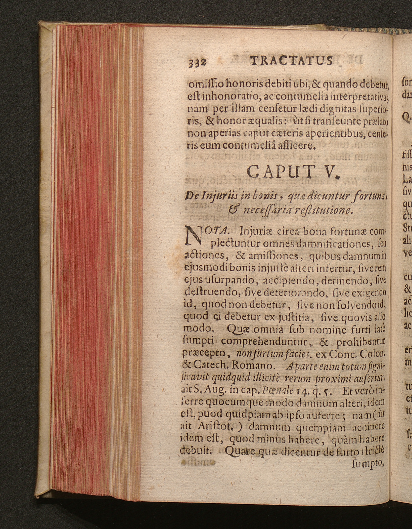 Cap V. De Injuriis in bonis quæ dicuntur fortunæ, & necessaria restitutione.