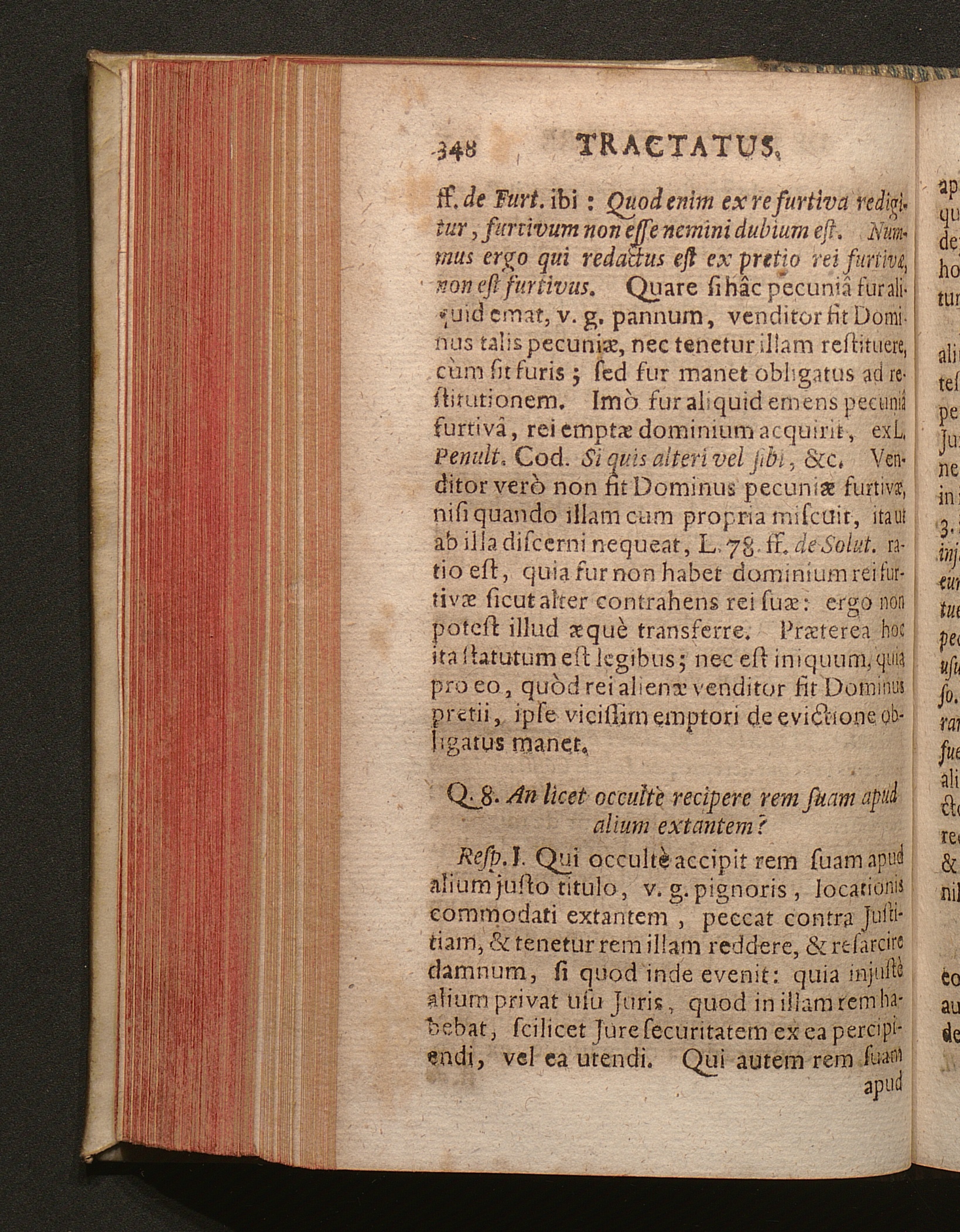 Q. 8. An licet occultè recipere rem suam apud alium extantem?