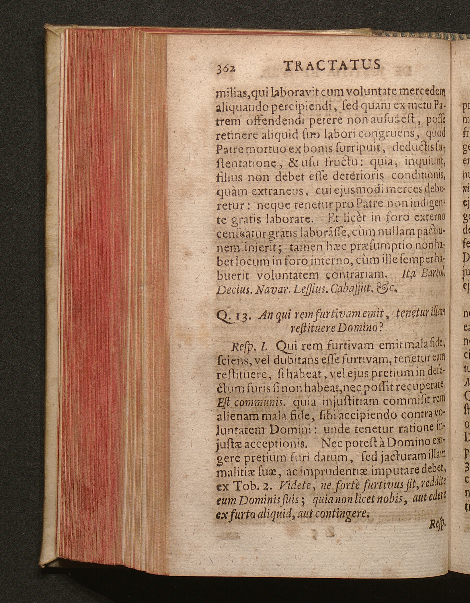 Q. 13. An qui rem furtivam emit, tenetur illam restituere Domino?