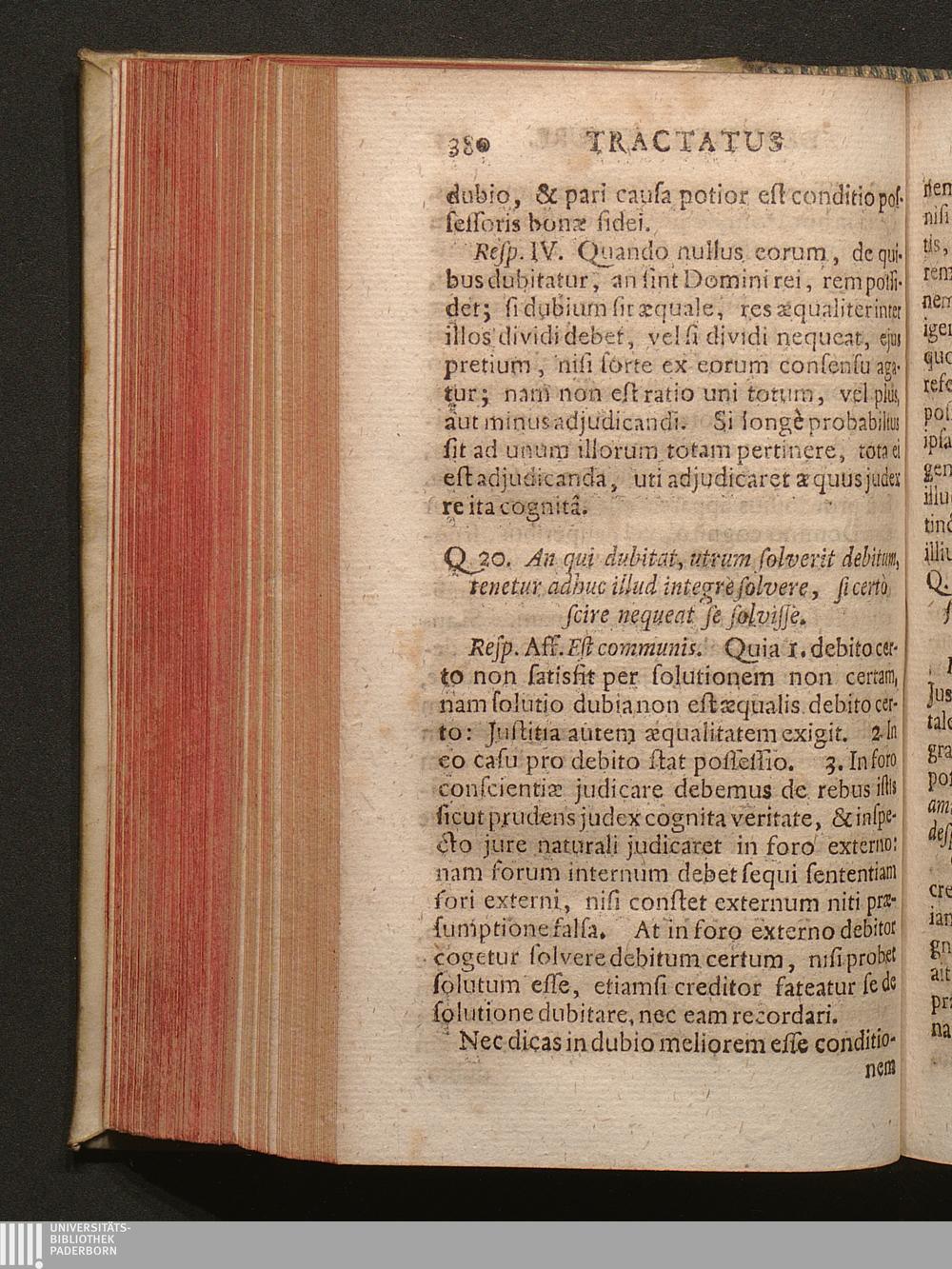 Q. 20. An qui dubitat utrum dolvit debitum, tenetur adhuc illud integrè solvere,[...]