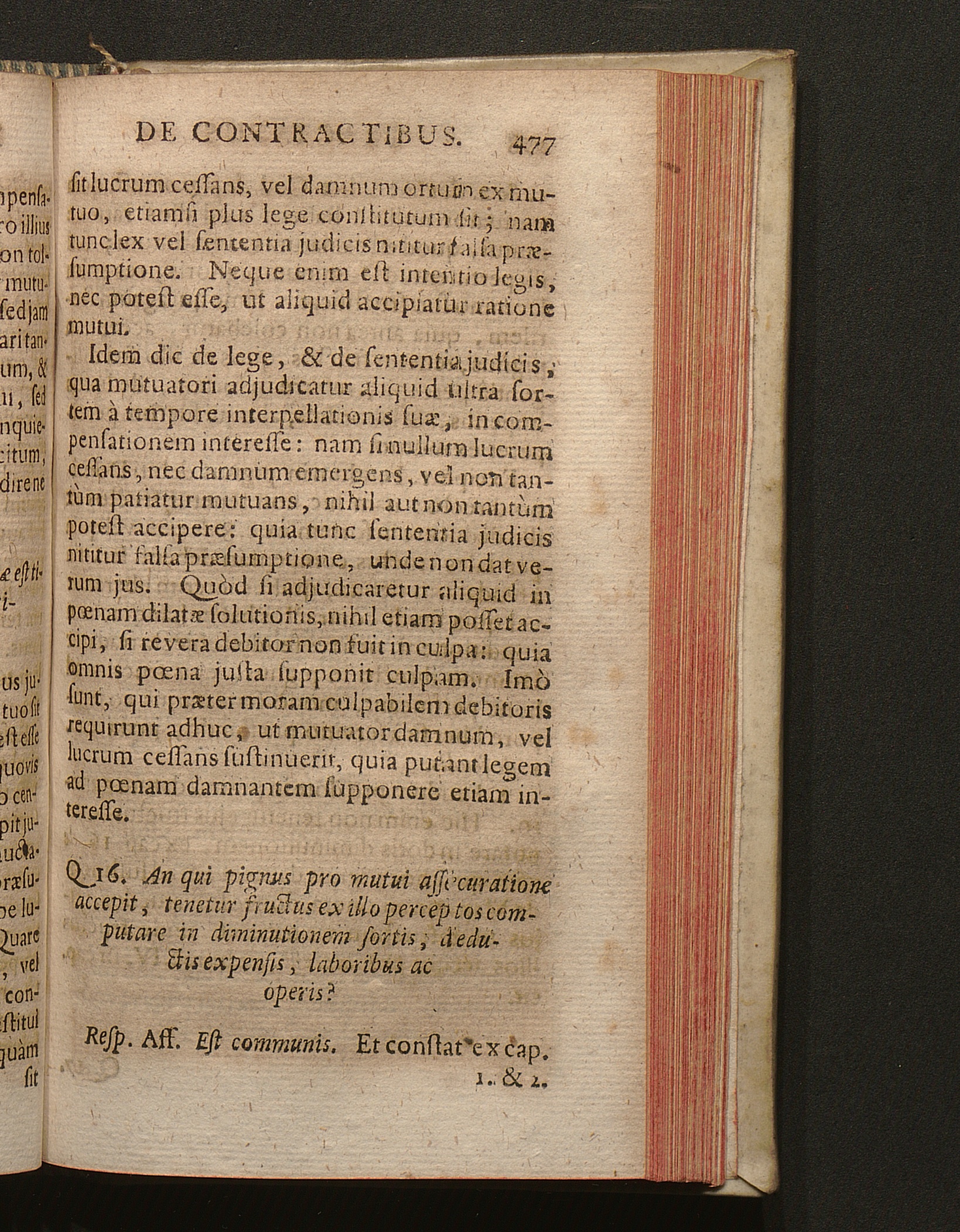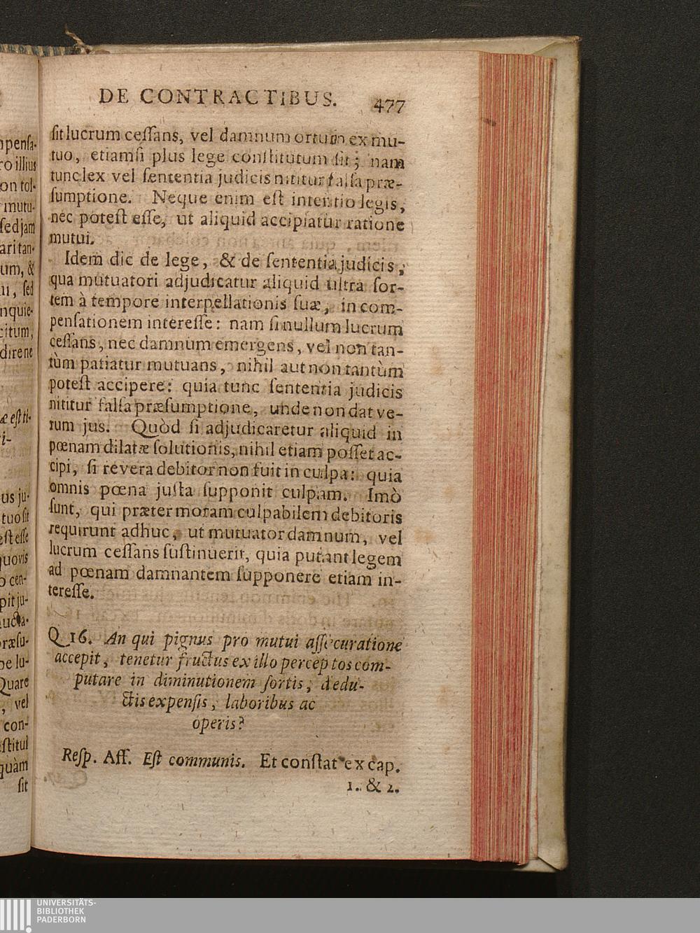 Q. 16. An qui pignus pro mutui assecuratione accepit, tenetur fructus ex illo perceptos[...]