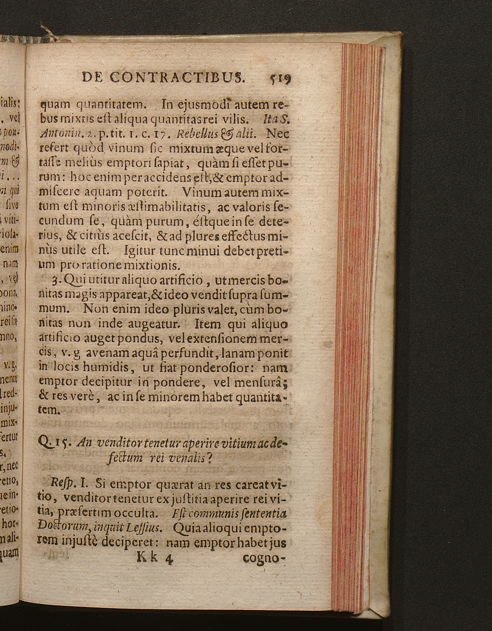 Q. 15. An venditor tenetur aperire vitium ac defectum rei venalis?
