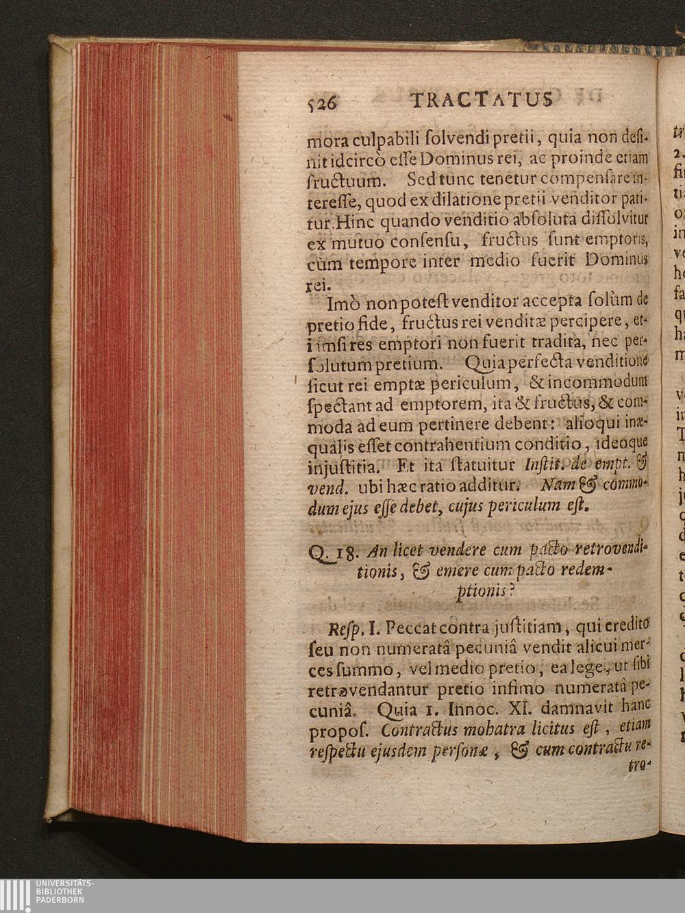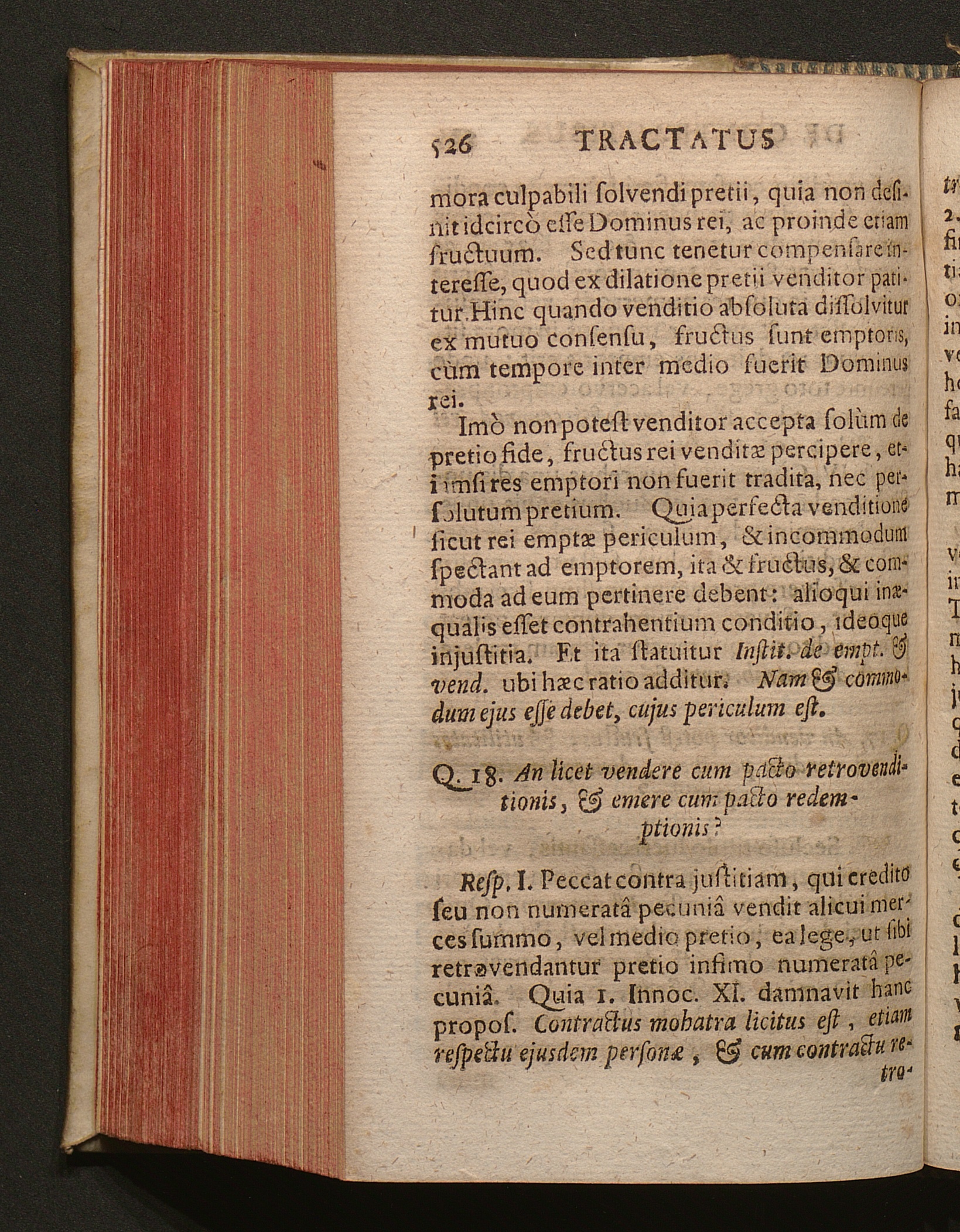 Q. 18. An licet vendere cum pacto retrovenditionis, & emere cum pacto redemption[...]