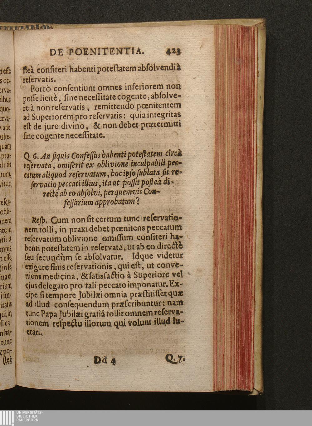 Q. 6. An siquis Confessus habenti potestatem circà reservata, omiserit ex oblivione[...]