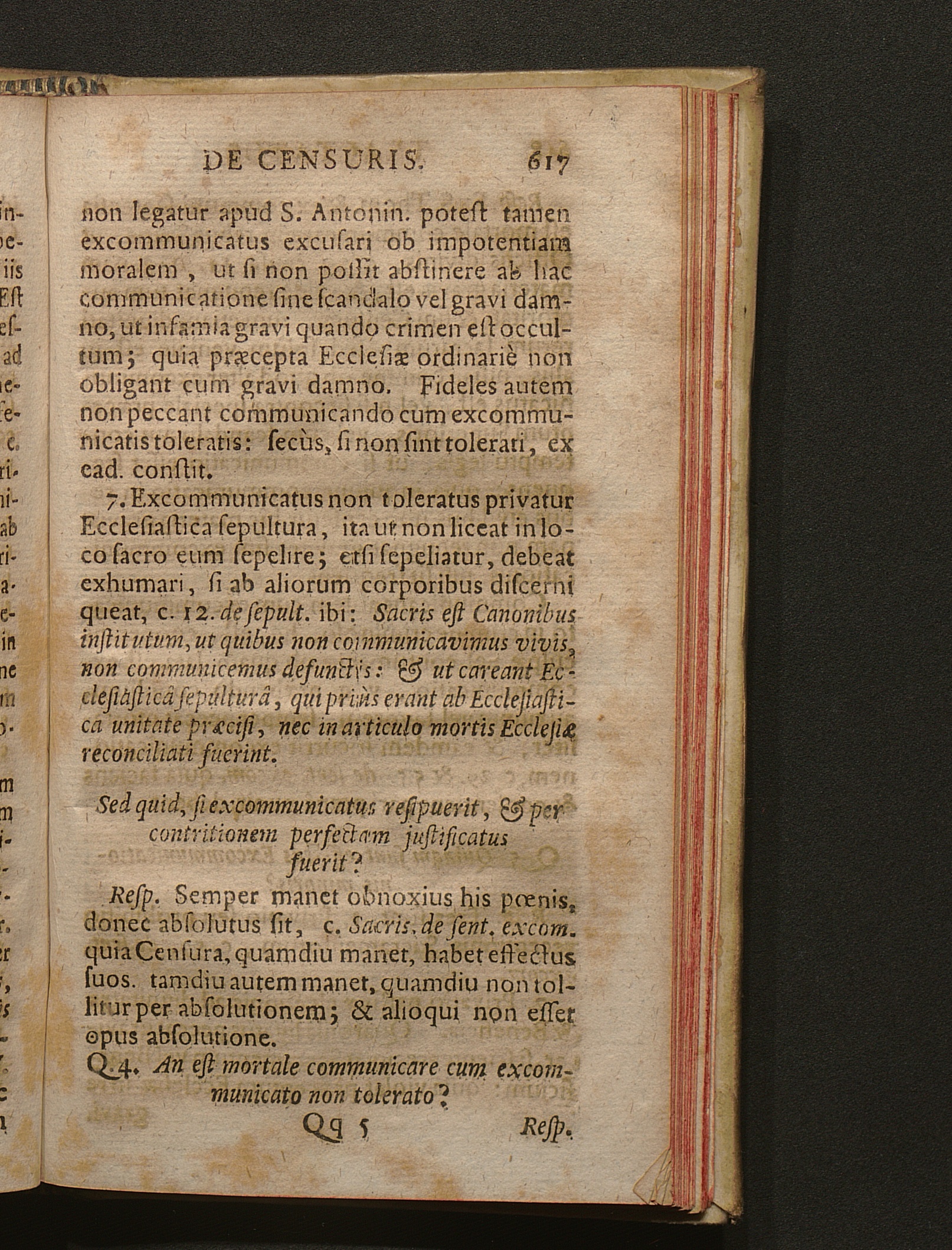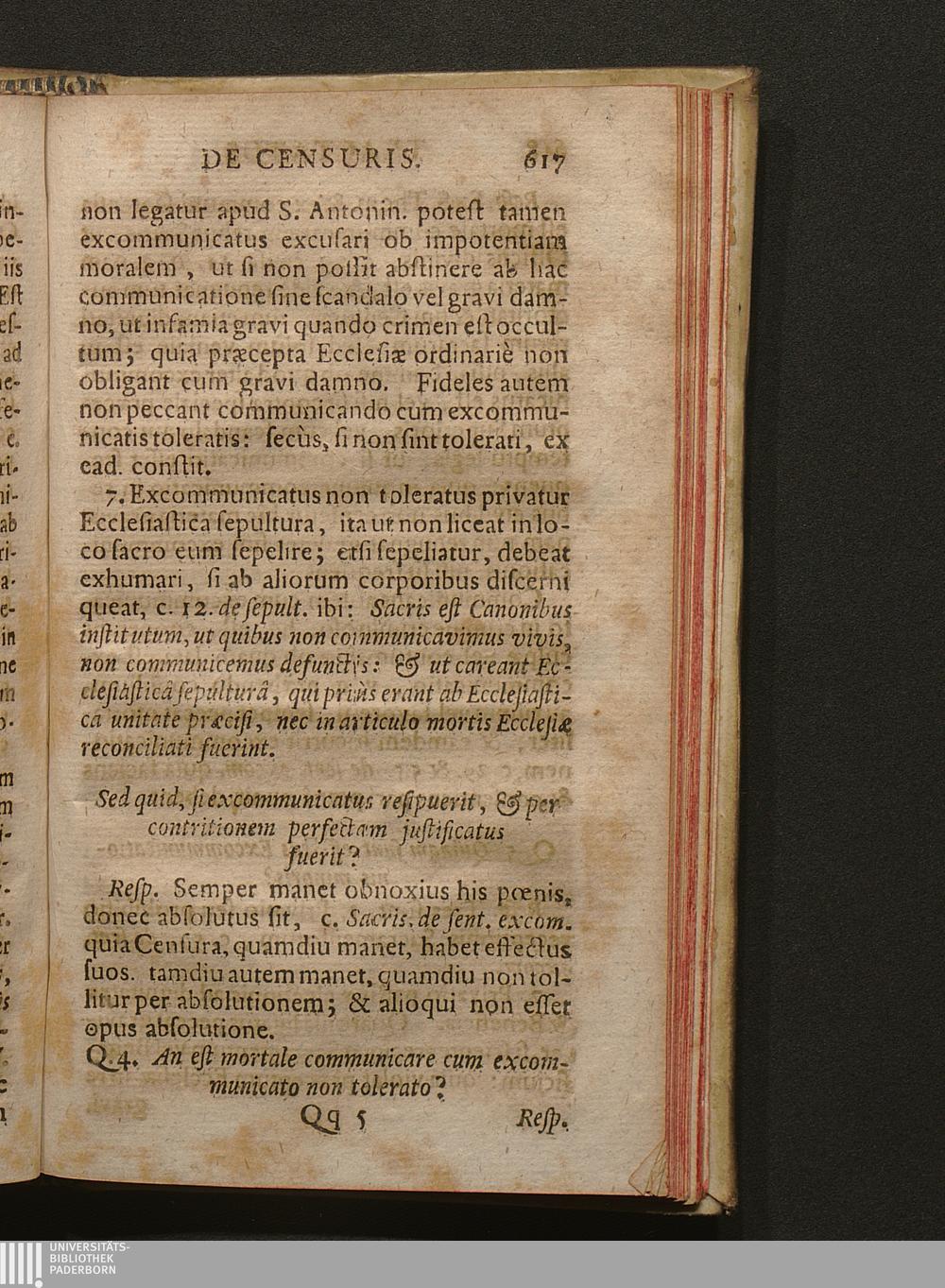 Q. 4. An est mortale communicare cum Excommunicato non tolerato?