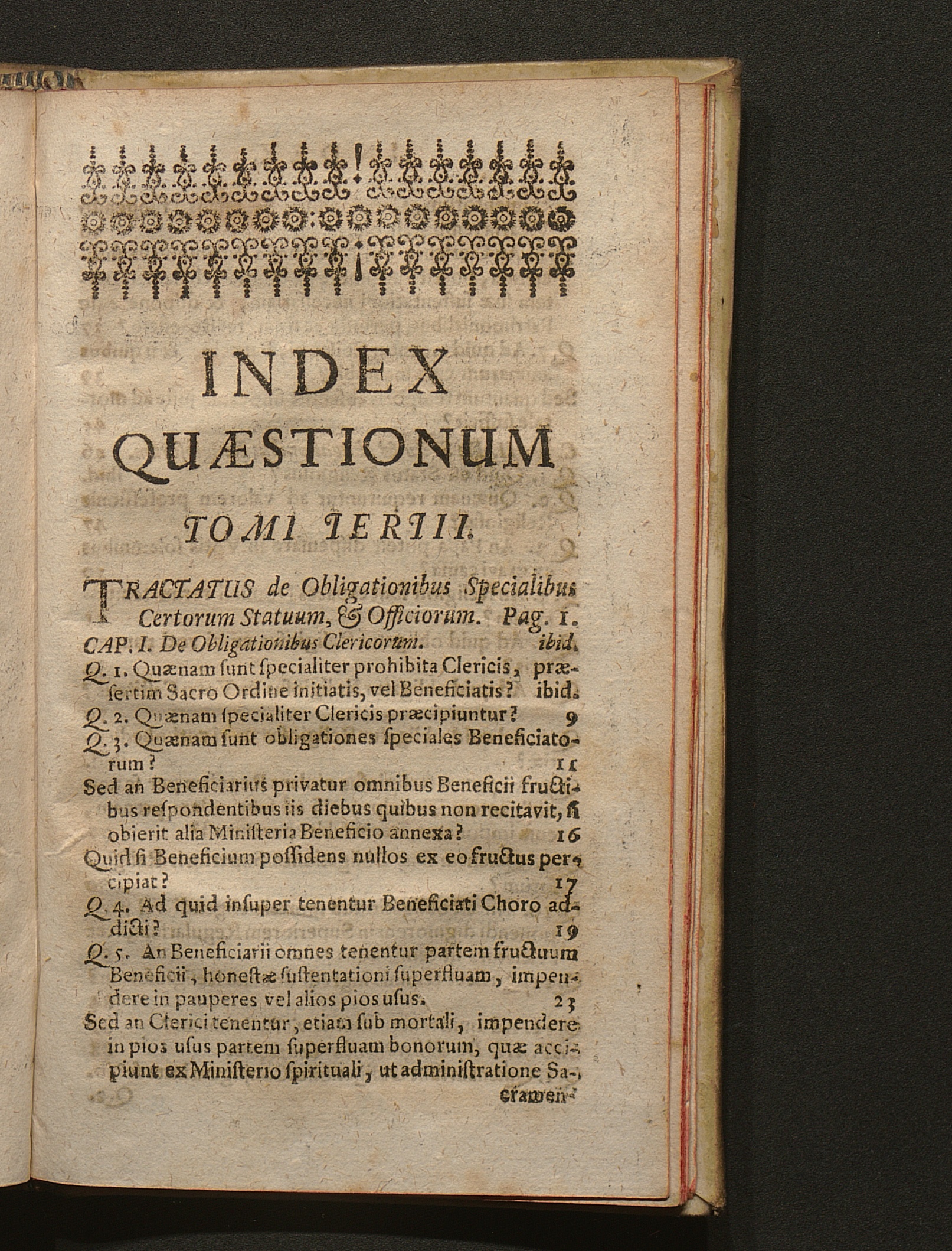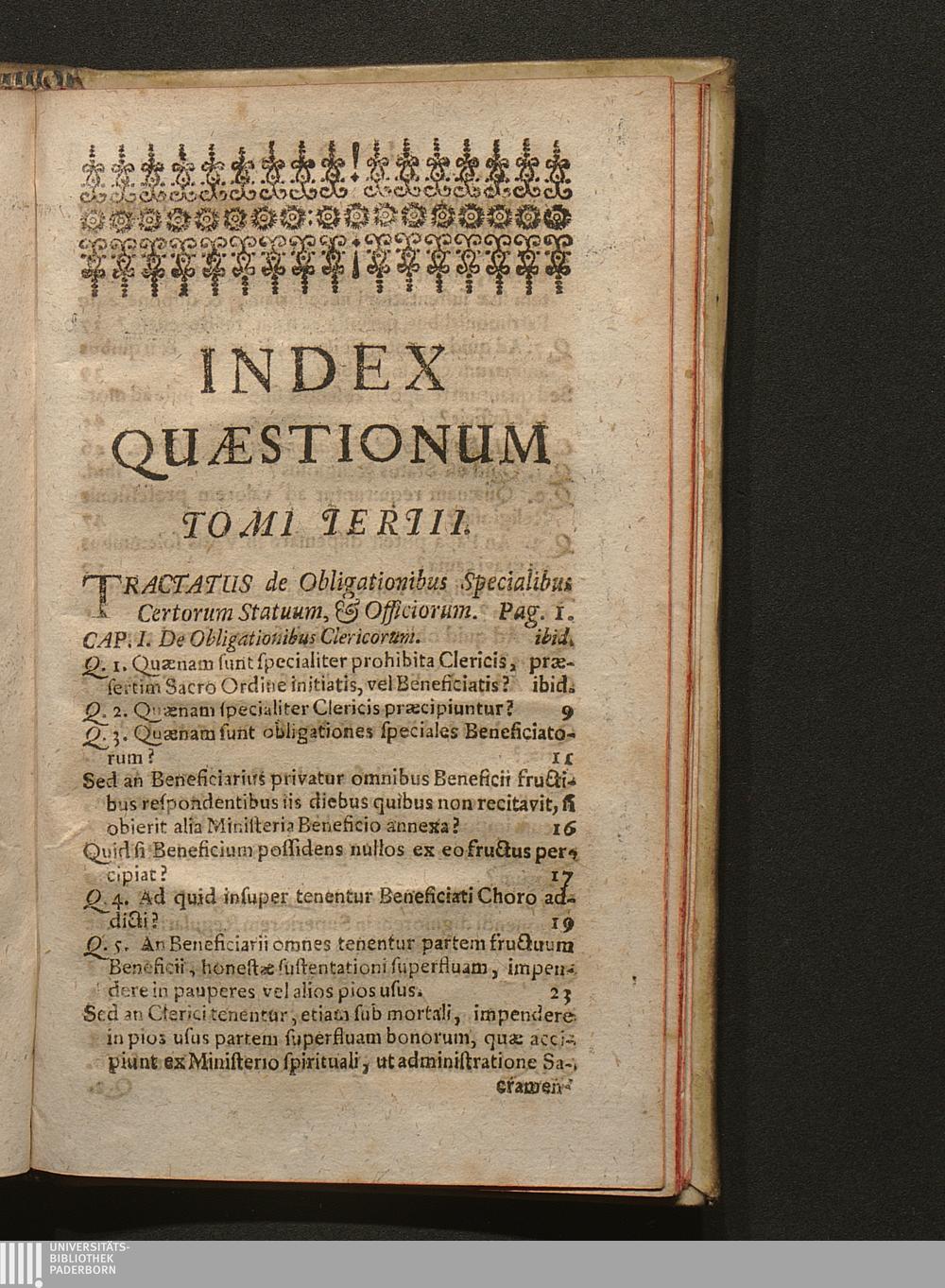 Index Quӕstionum Tomi Tertii.