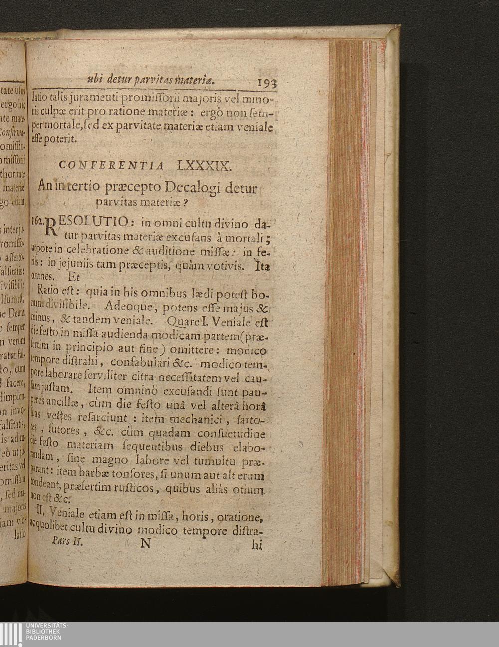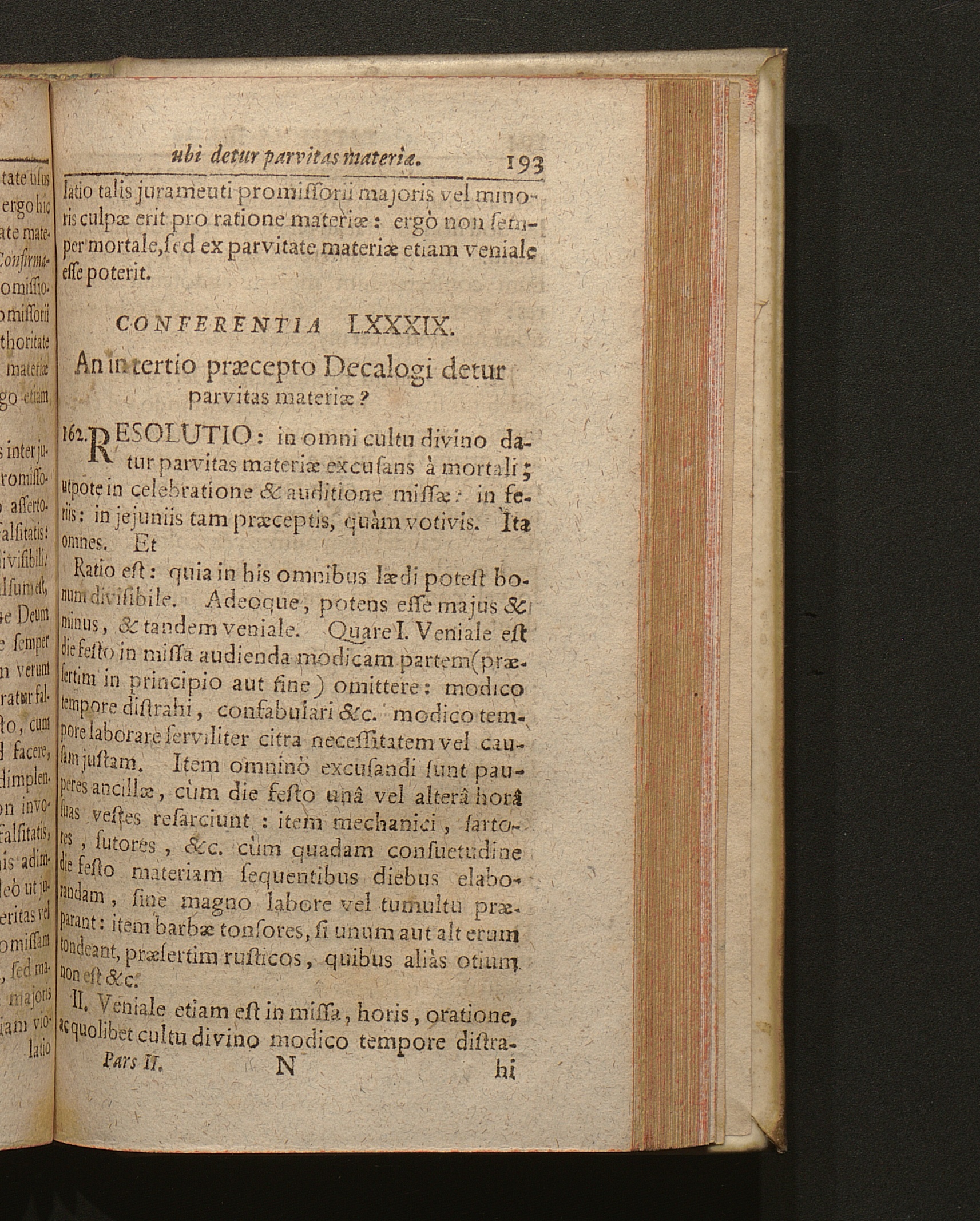 Conferentia LXXXIX. An in tertio prӕcepto Decalogi detur parvitas materiӕ ?