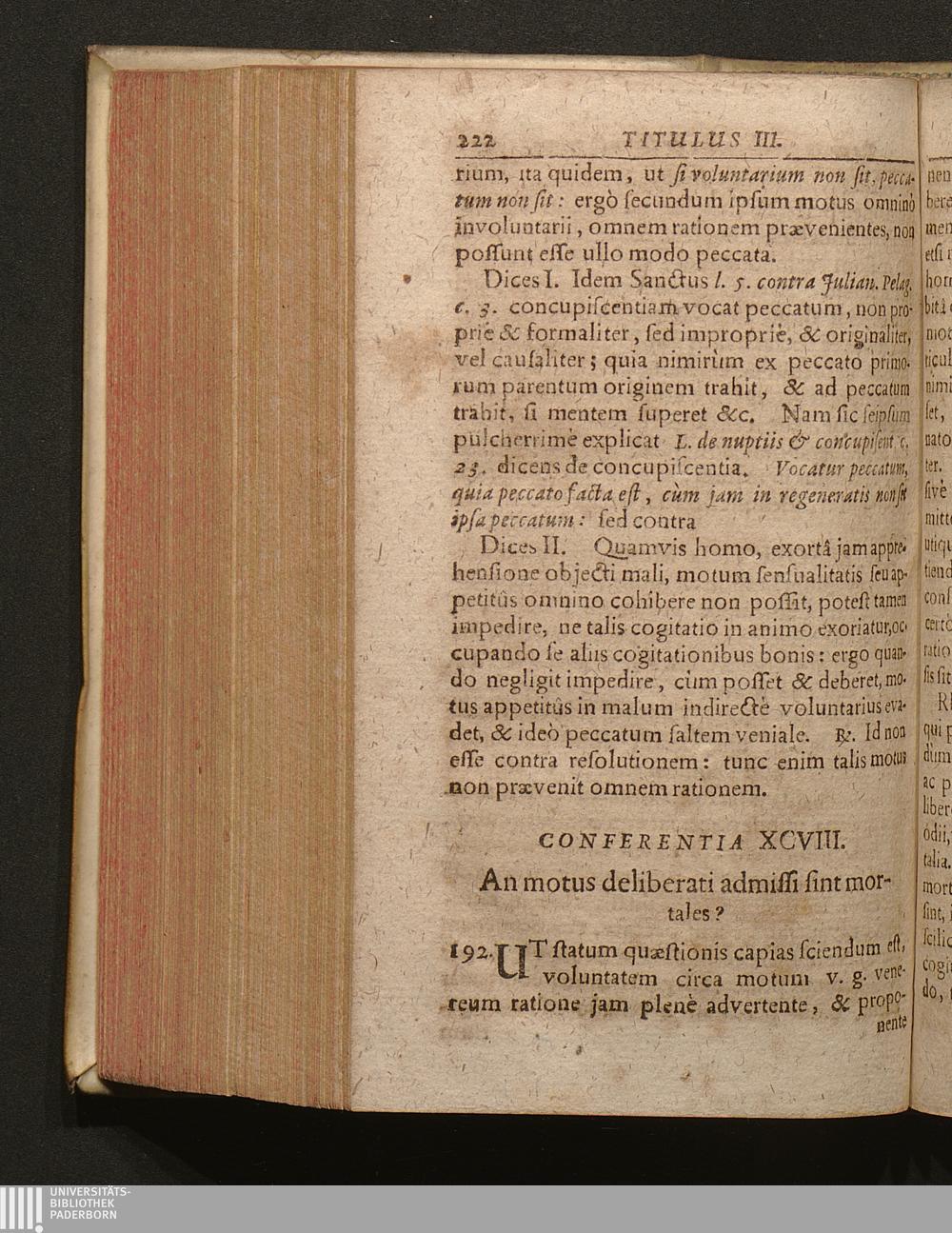 Conferentia XCVIII. An motus deliberati admissi sint mortales ?