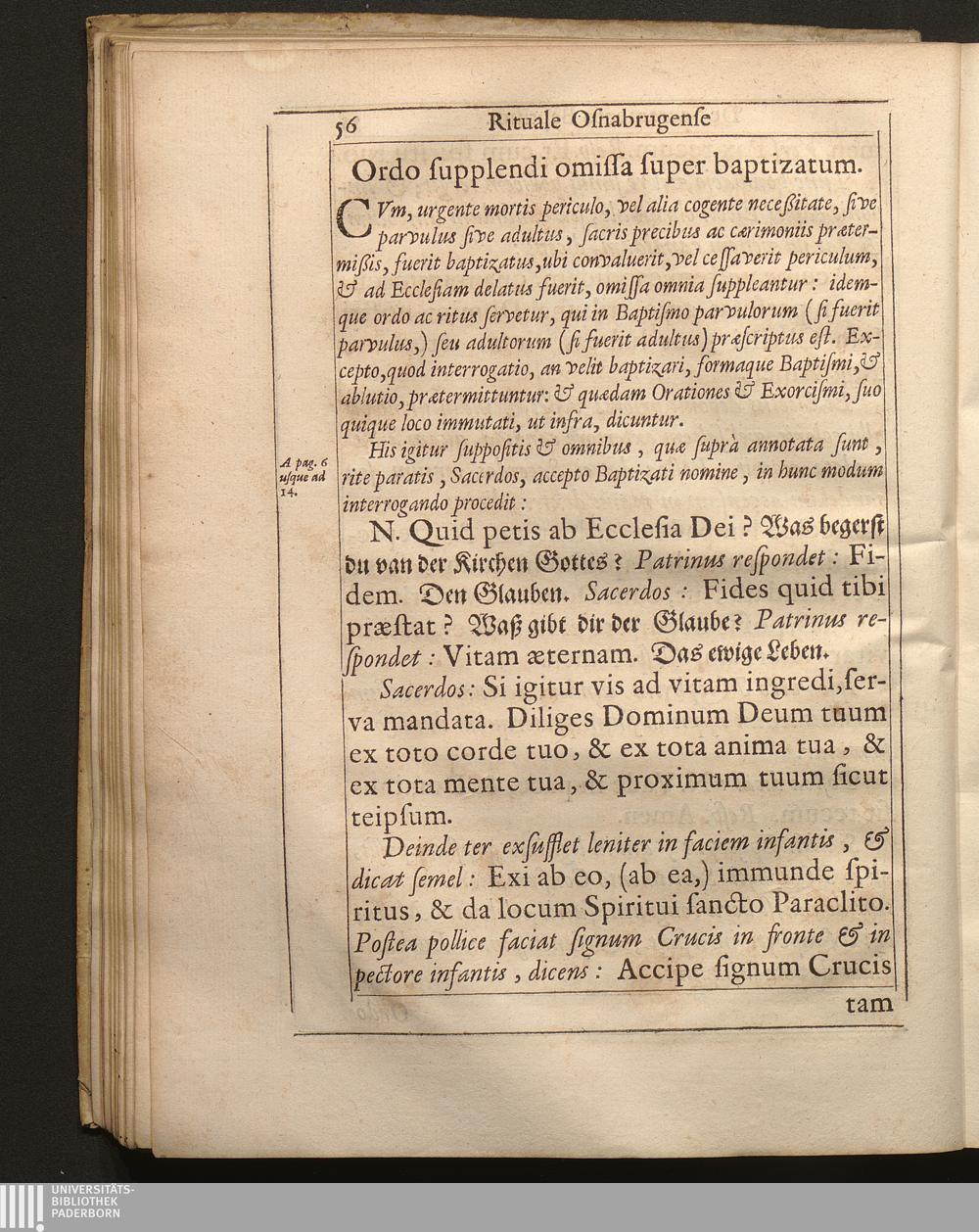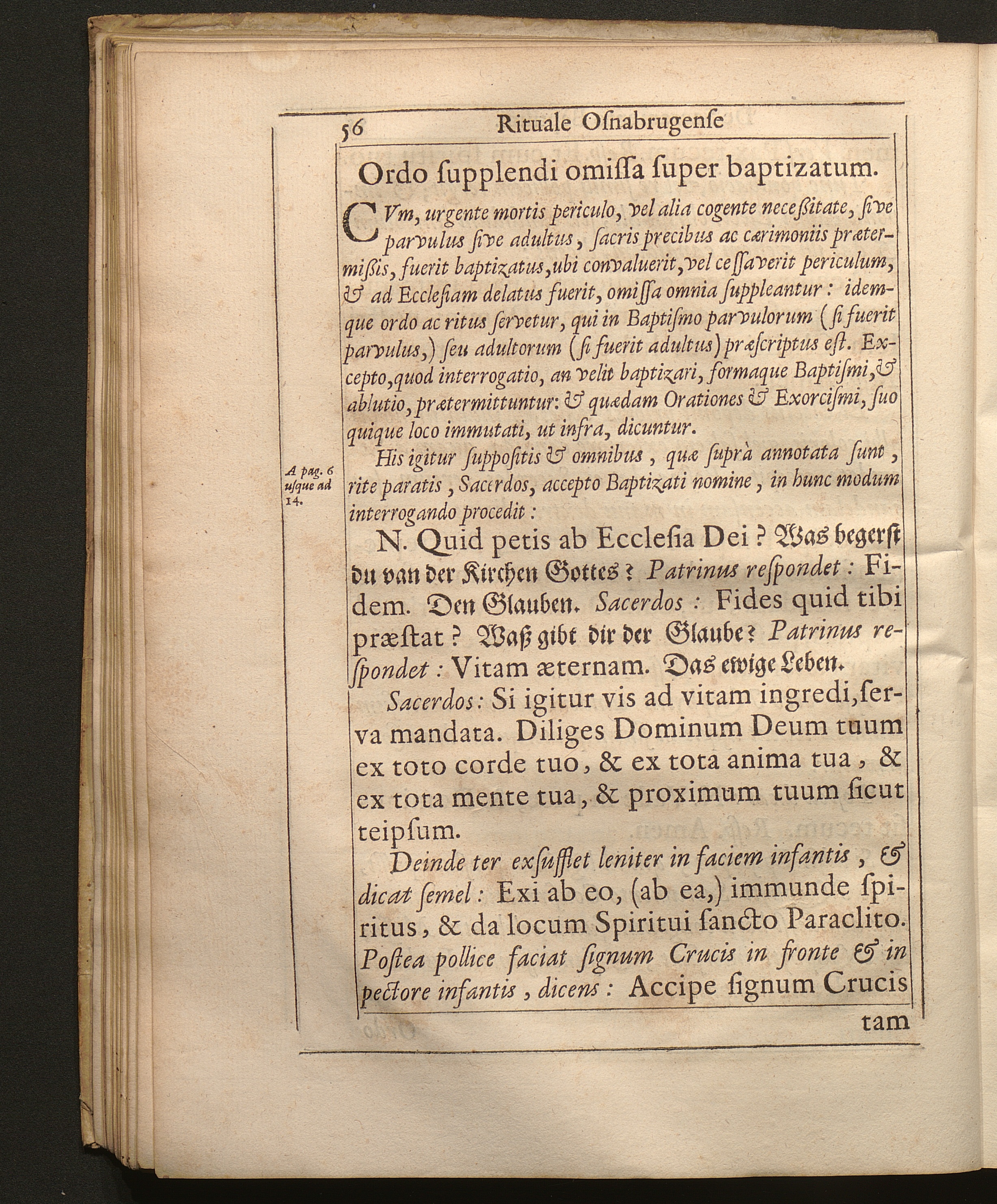Agenda, Sev Ritvale Osnabrvgense : Ad usum Romanum accommodatum / Avtoritate Et Ivssv Reverendissimi & Illustrissimi Principis Ac Domini, D. Francisci Gvilielmi, Episcopi Osnabrvgensis