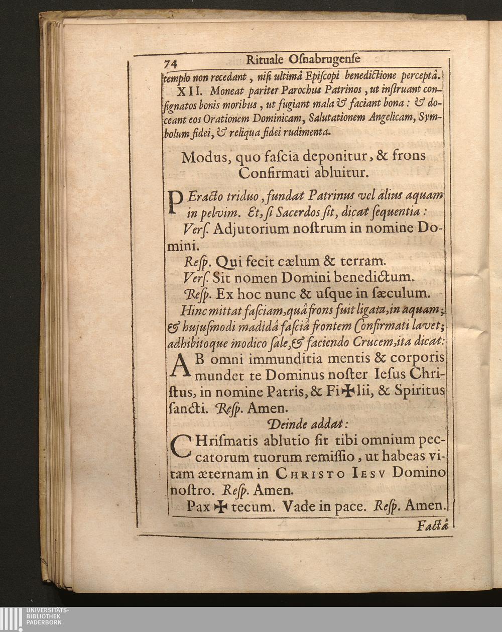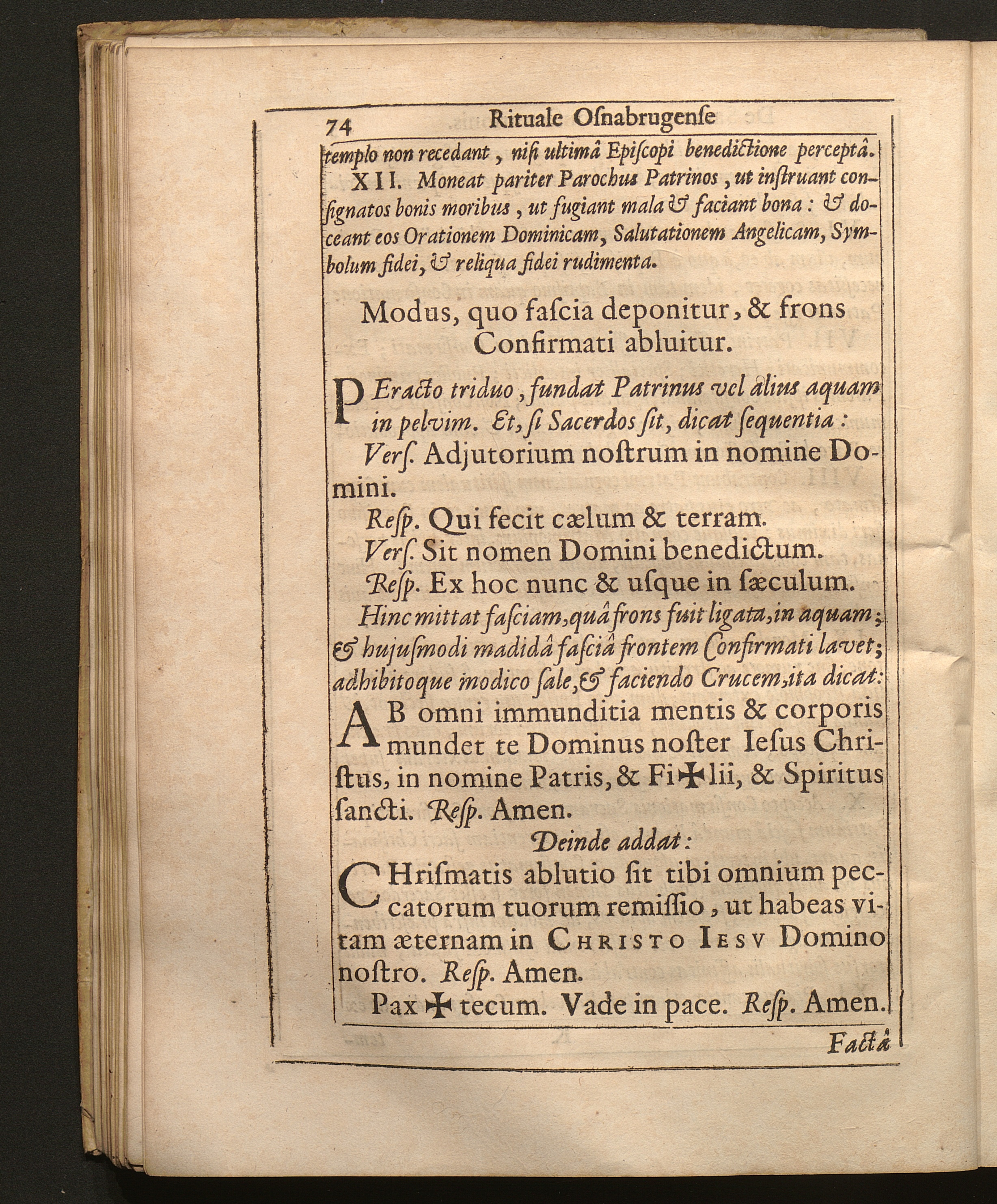 Modus, quo fascia deponitur, & frons Confirmati abluitur.
