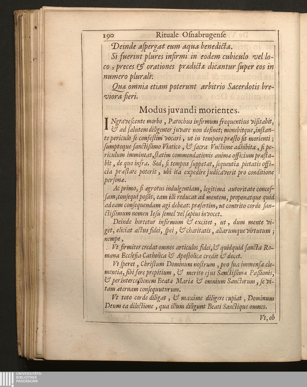 Agenda, Sev Ritvale Osnabrvgense : Ad usum Romanum accommodatum / Avtoritate Et Ivssv Reverendissimi & Illustrissimi Principis Ac Domini, D. Francisci Gvilielmi, Episcopi Osnabrvgensis