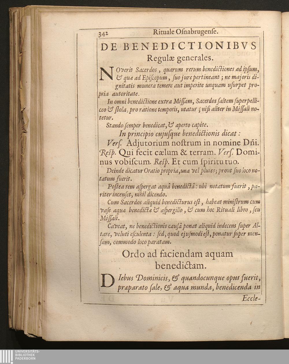 Agenda, Sev Ritvale Osnabrvgense : Ad usum Romanum accommodatum / Avtoritate Et Ivssv Reverendissimi & Illustrissimi Principis Ac Domini, D. Francisci Gvilielmi, Episcopi Osnabrvgensis