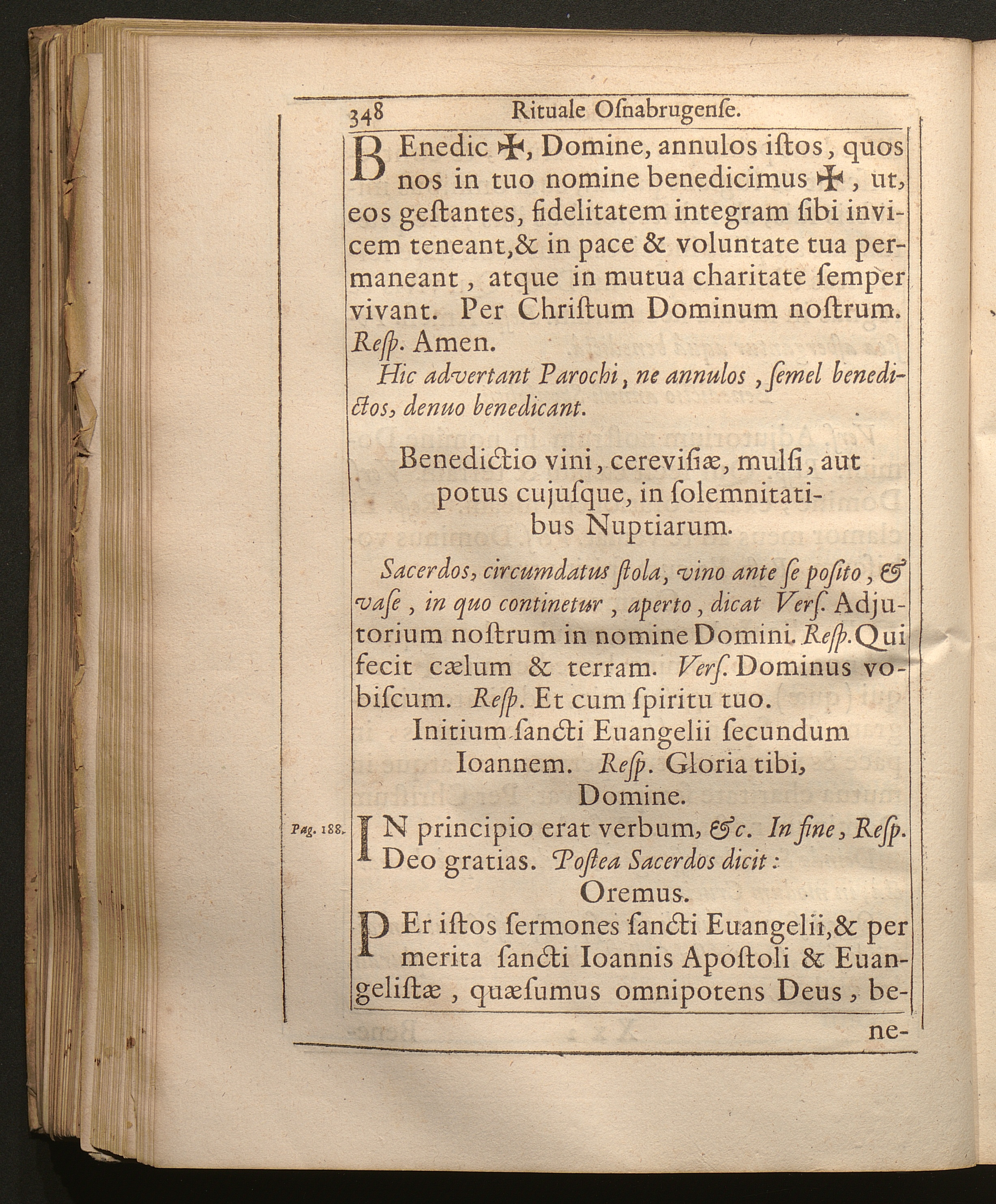 Benedictio vini, &c. in solemnitatibus Nuptiarum.