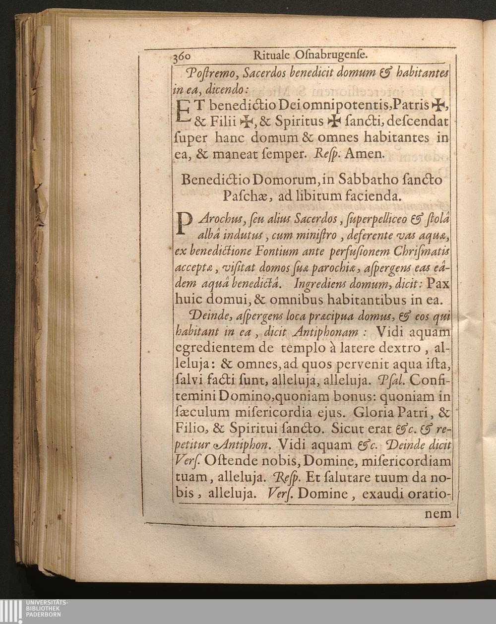 Benedictio domorum, in Sabbatho sancto Paschӕ, ad libitum facienda.