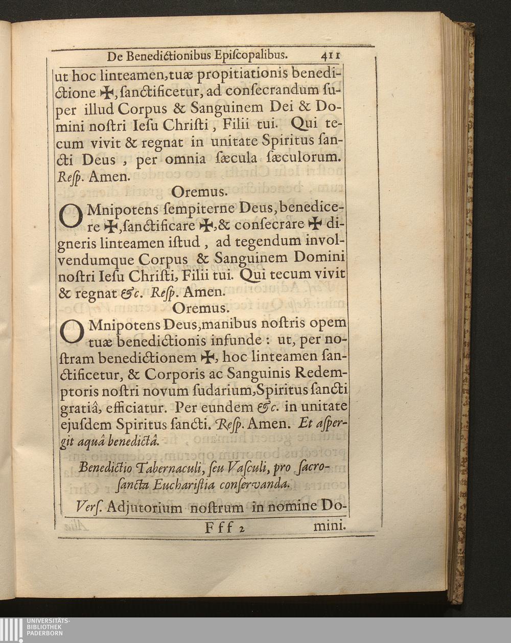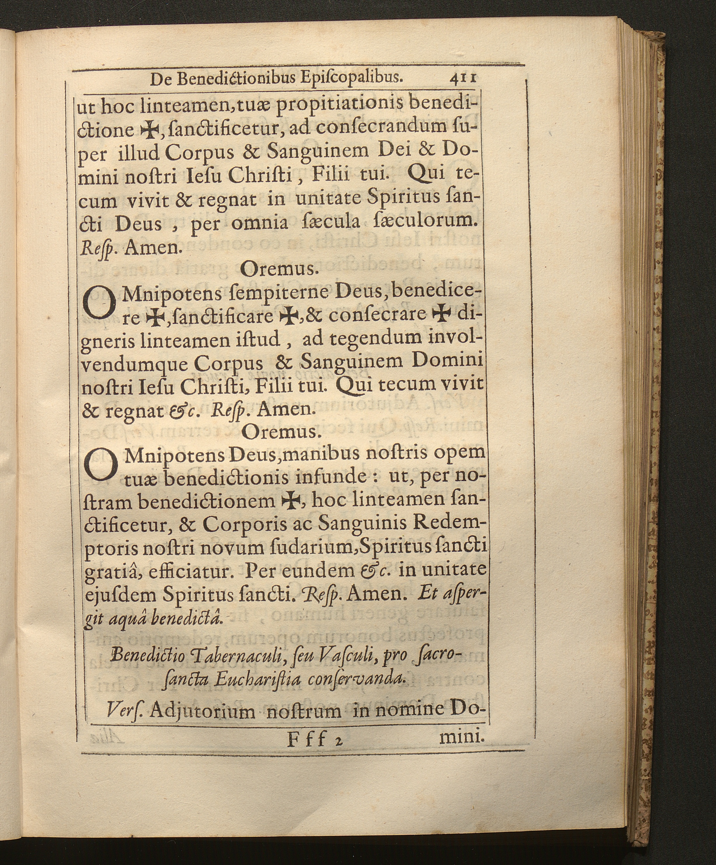 Benedictio Tabernaculi seu Vasculi pro sacrosancta Eucharistia conservanda.