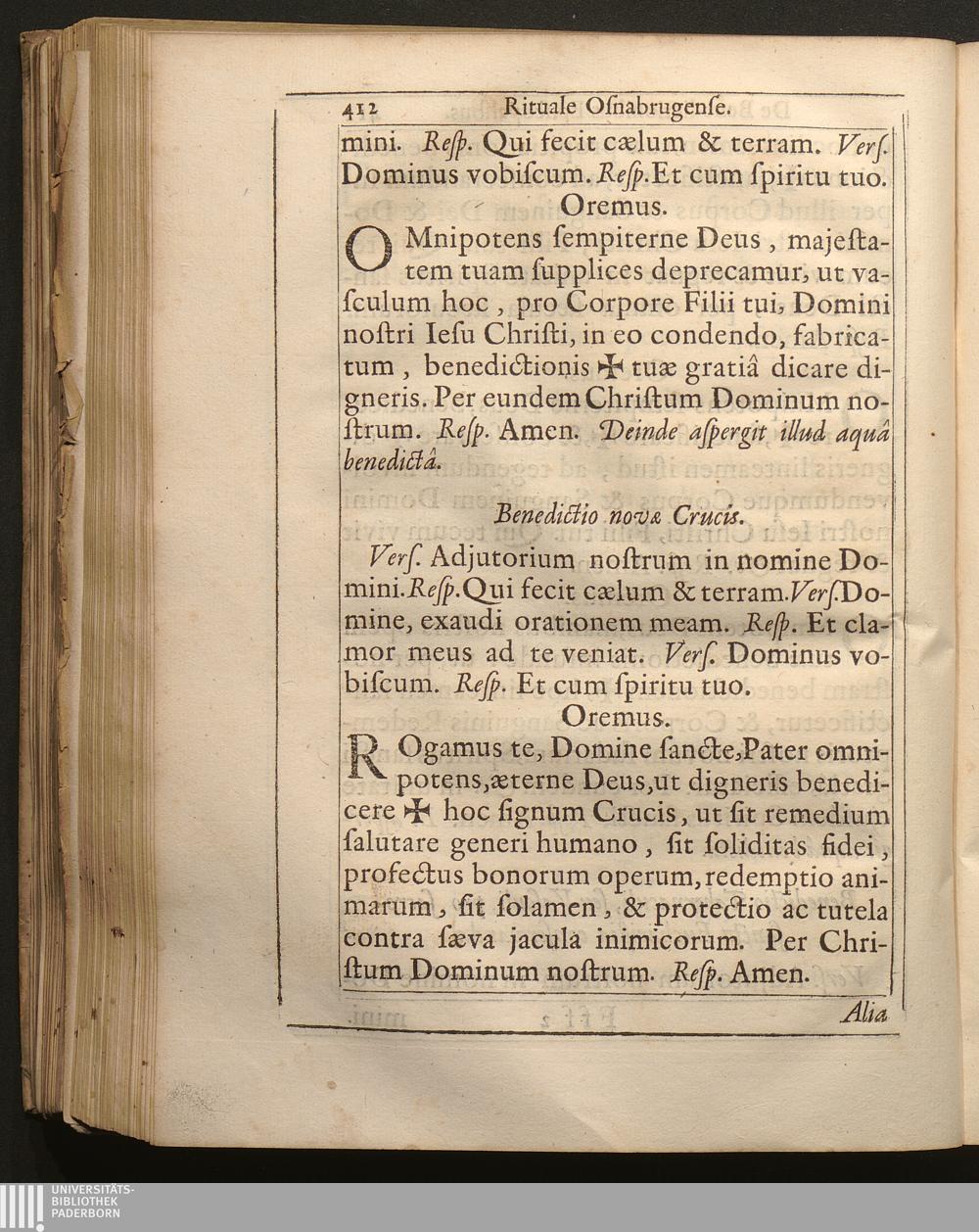 Agenda, Sev Ritvale Osnabrvgense : Ad usum Romanum accommodatum / Avtoritate Et Ivssv Reverendissimi & Illustrissimi Principis Ac Domini, D. Francisci Gvilielmi, Episcopi Osnabrvgensis