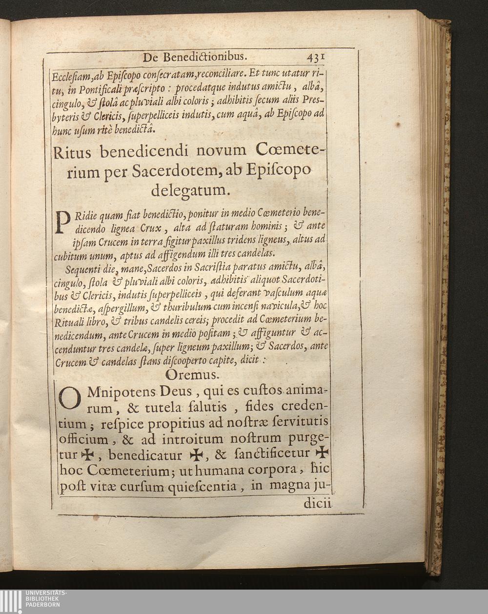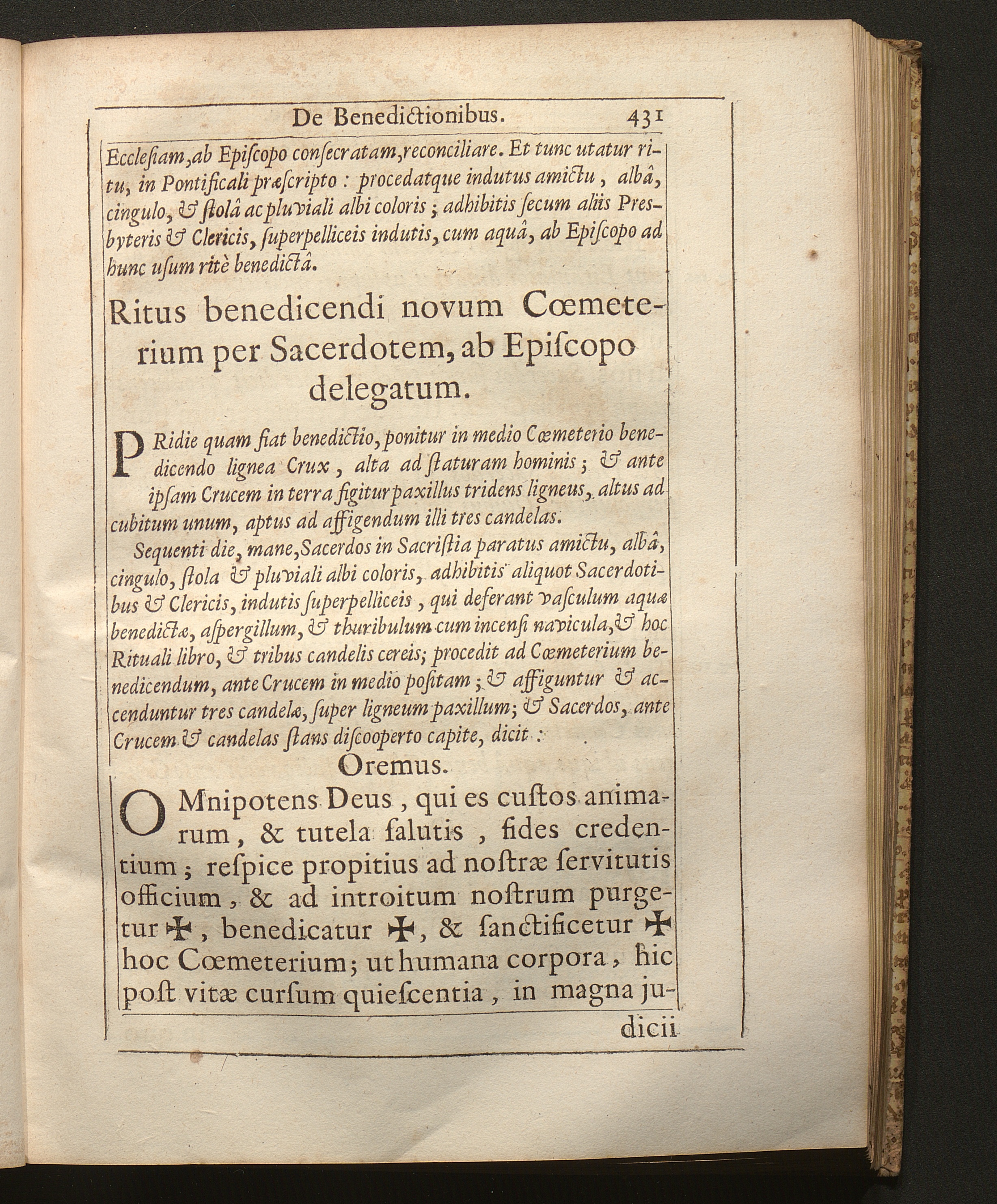 Ritus benedicendi novum Cœmeterium, per Sacerdotem, ab Episcopo delegatum.