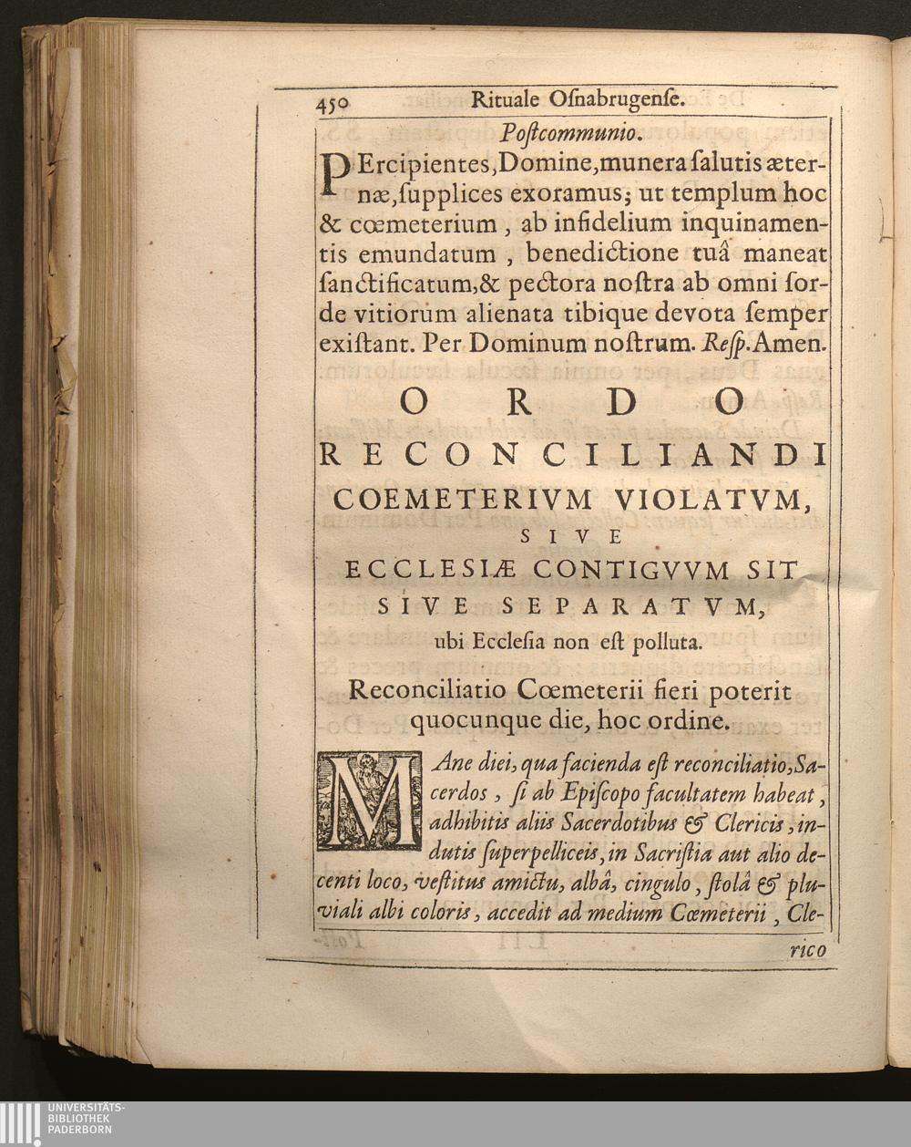Ordo reconciliandi Cœmeterium violatum, sive Ecclesiӕ contiguum sit sive separatum,[...]