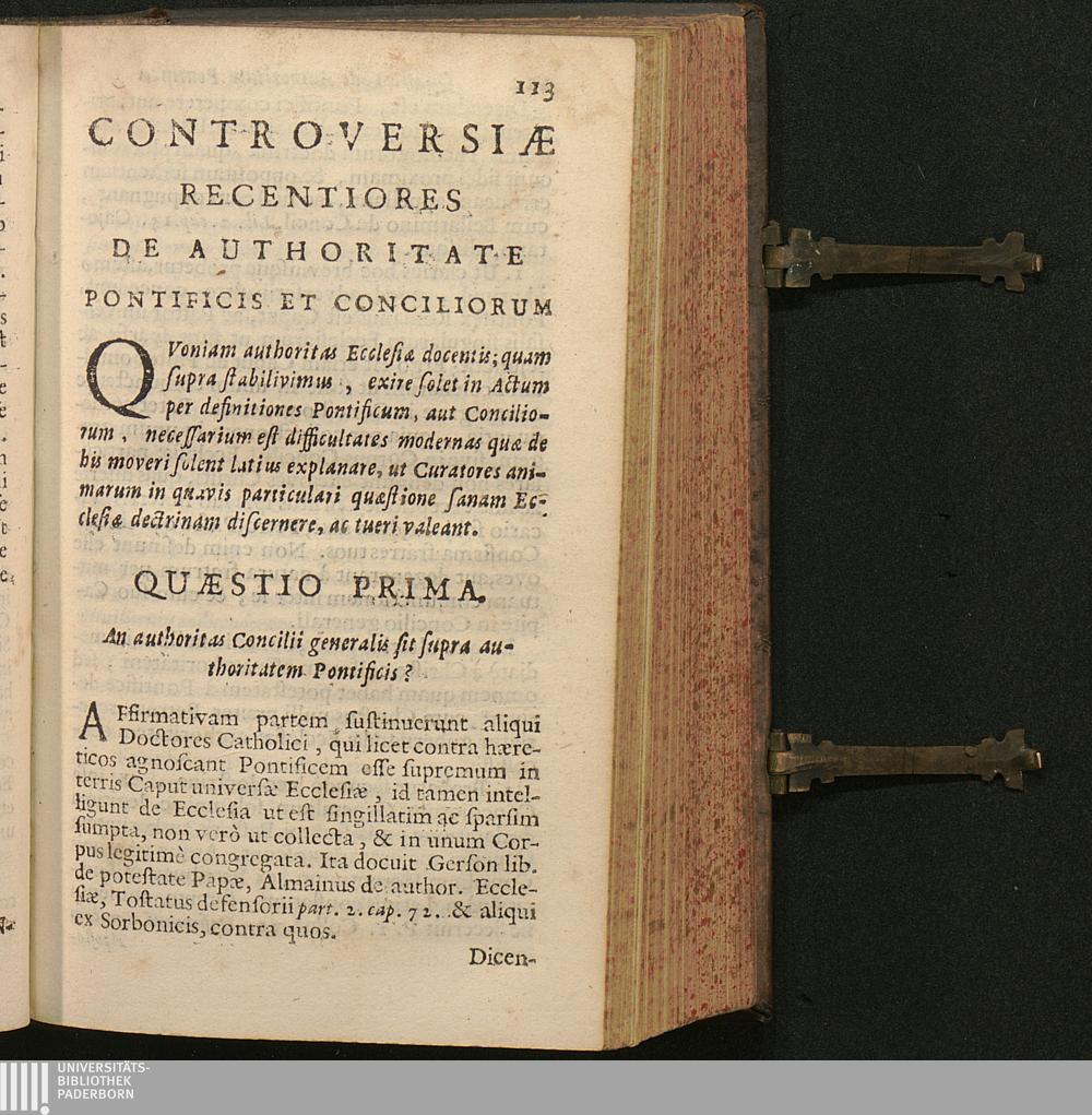 Controversiӕ Recentiores. De authoritate Pontificis & Conciliorum.