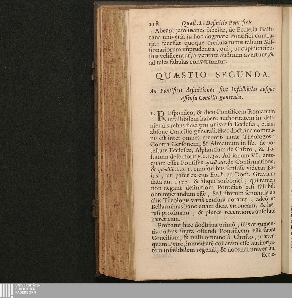 Quӕstio 2. An Pontificis Definitiones sint infallibiles absque assensu Concilij [...]