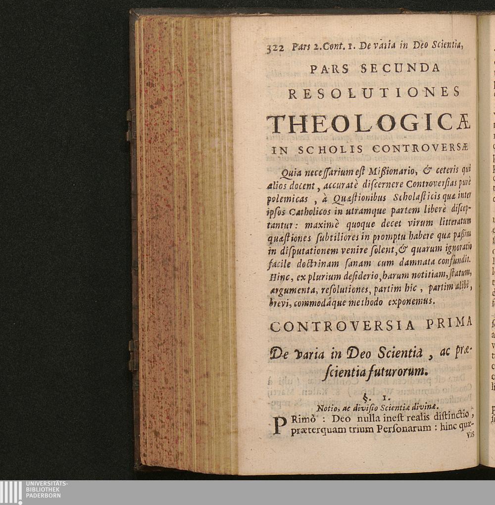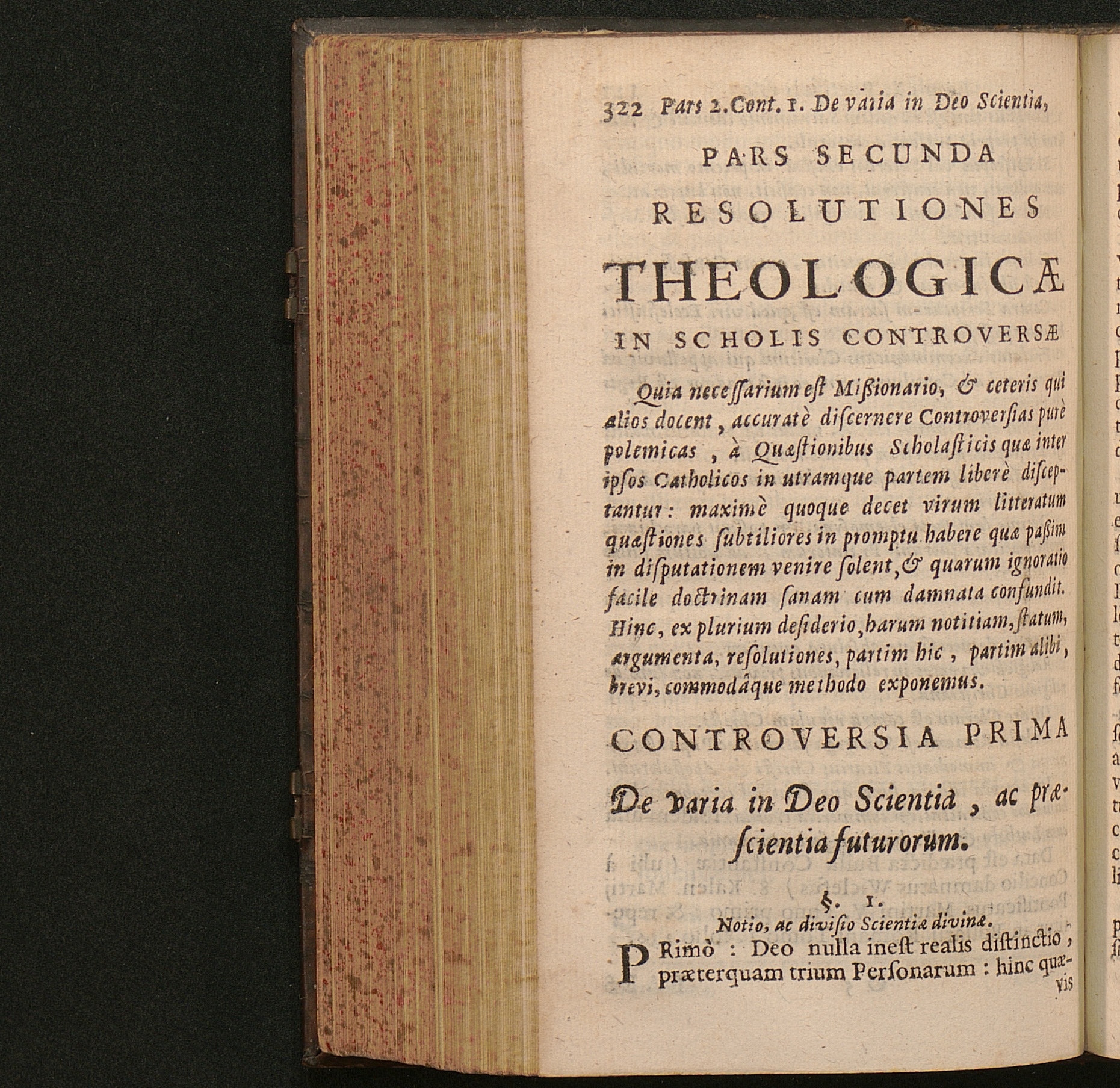 Controversia 1. De varia in Deo Scientia, ac prӕscientia futurorum.