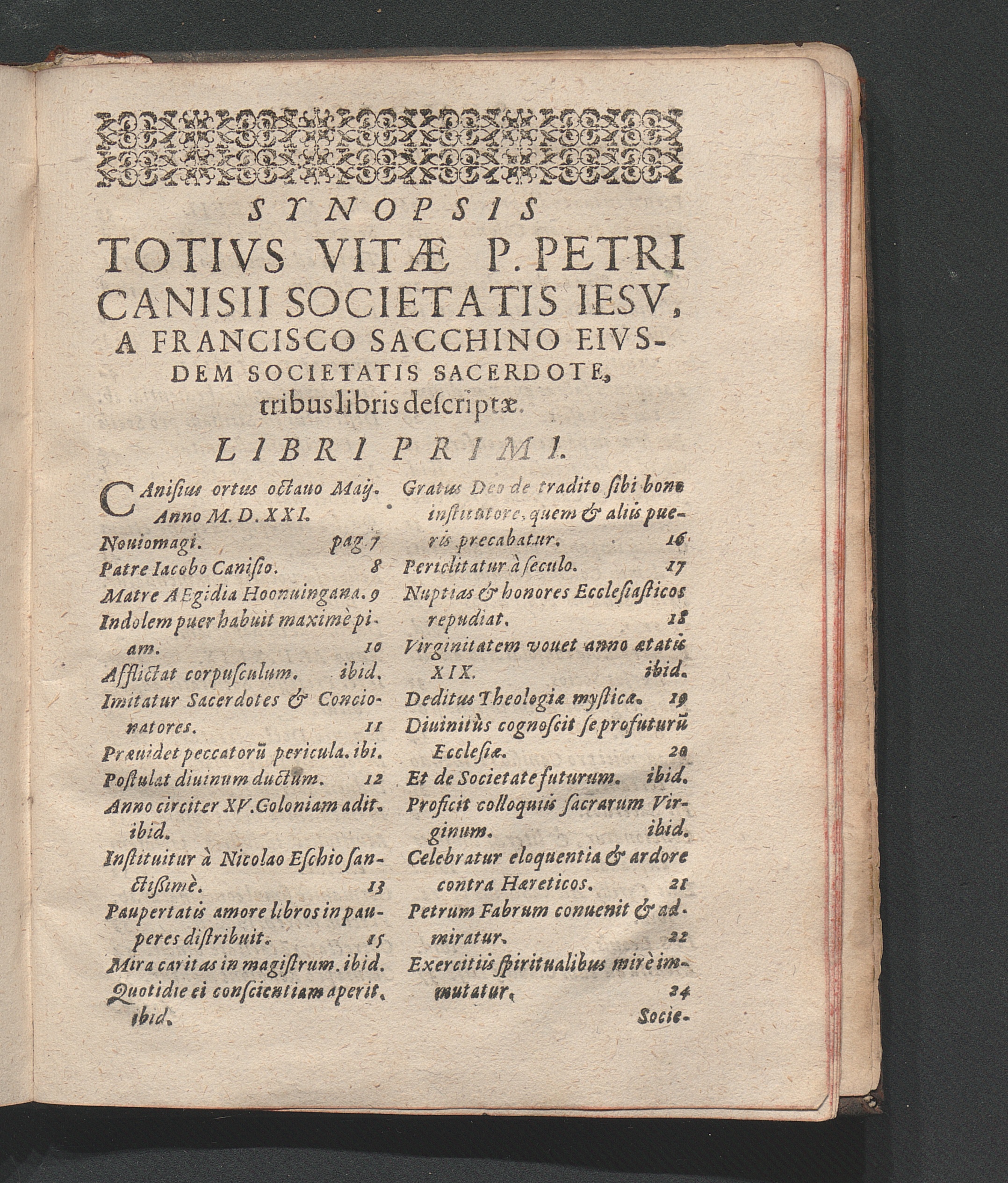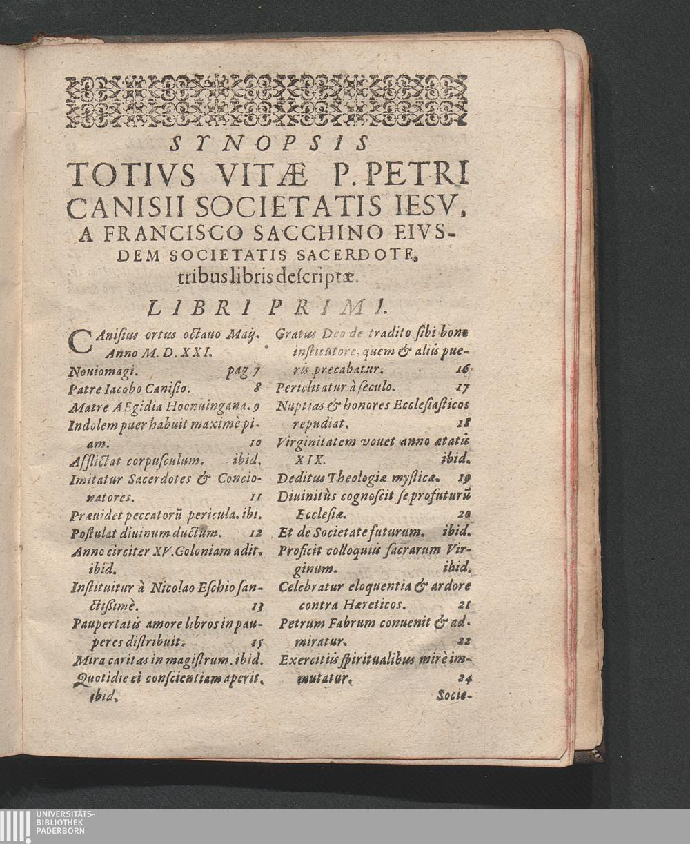 Synopsis Totivs Vitæ P. Petri Canisii Societatis Iesv, A Francisco Sacchino Eivsdem[...]
