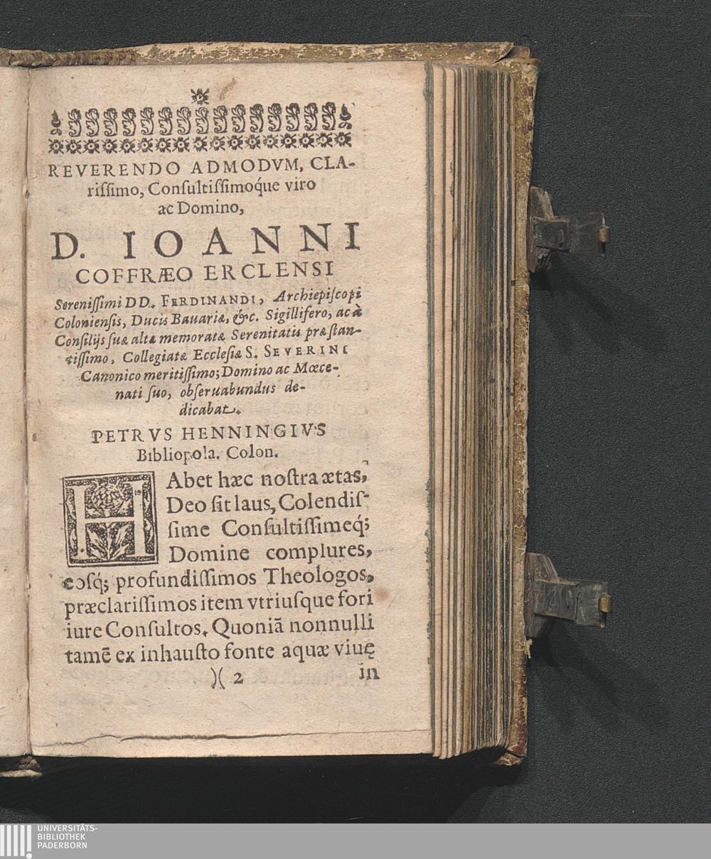 Reverendo Admodvm, Clarissimo, Consultissimoque viro ac Domino, D. Ioanni Coffræo[...]