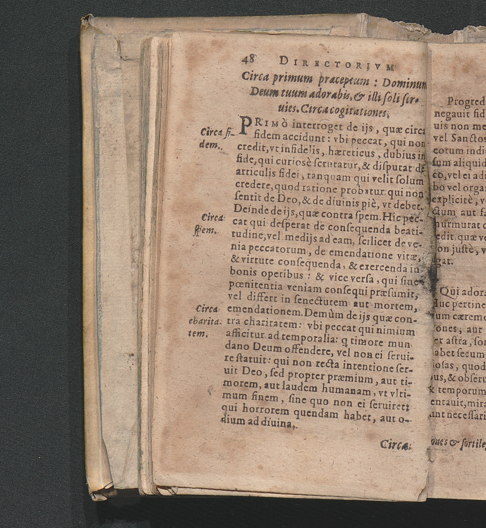 Circa primum prӕceptum, Dominum Deum tuum adorabis, & illi soli seruies.