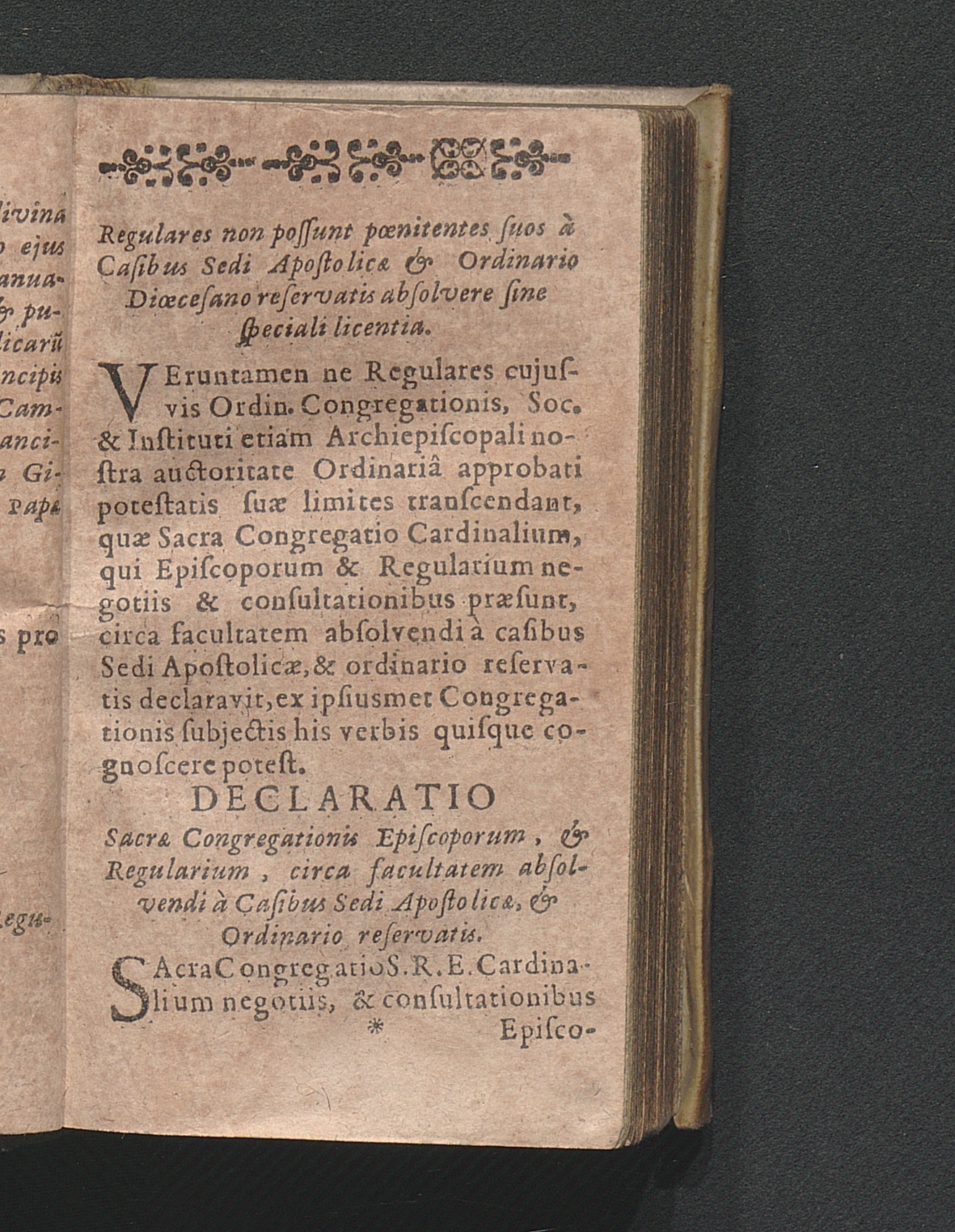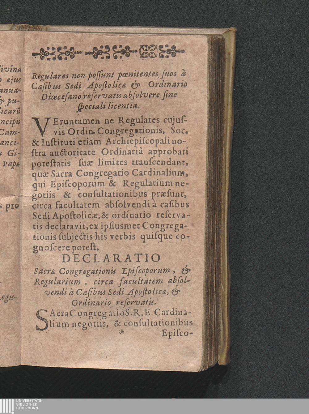 Declaratio Sacrӕ Congregationis Episcoporum, & Regularium, circa facultatem absolvendi[...]