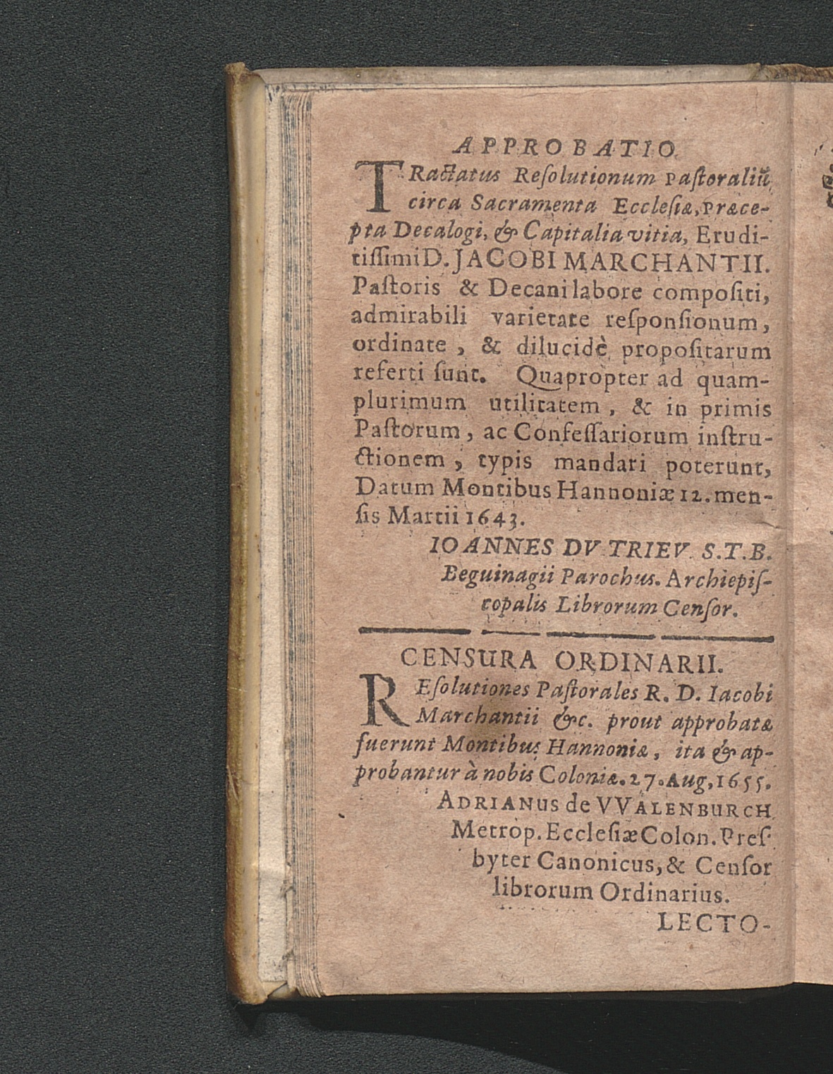 Resolutiones Pastorales De Præceptis, Vitiis Capitalibus, Et De Sacramentis / Auctore R. D. Jacobo Marchantio, Oppidi Couviniensis Pastore & Decano, S. Theol. Professore