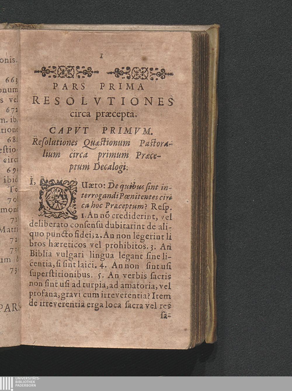 Caput I. Resolutiones Quӕstionum Pastoralium circa prim[um] prӕceptum Decalogi
