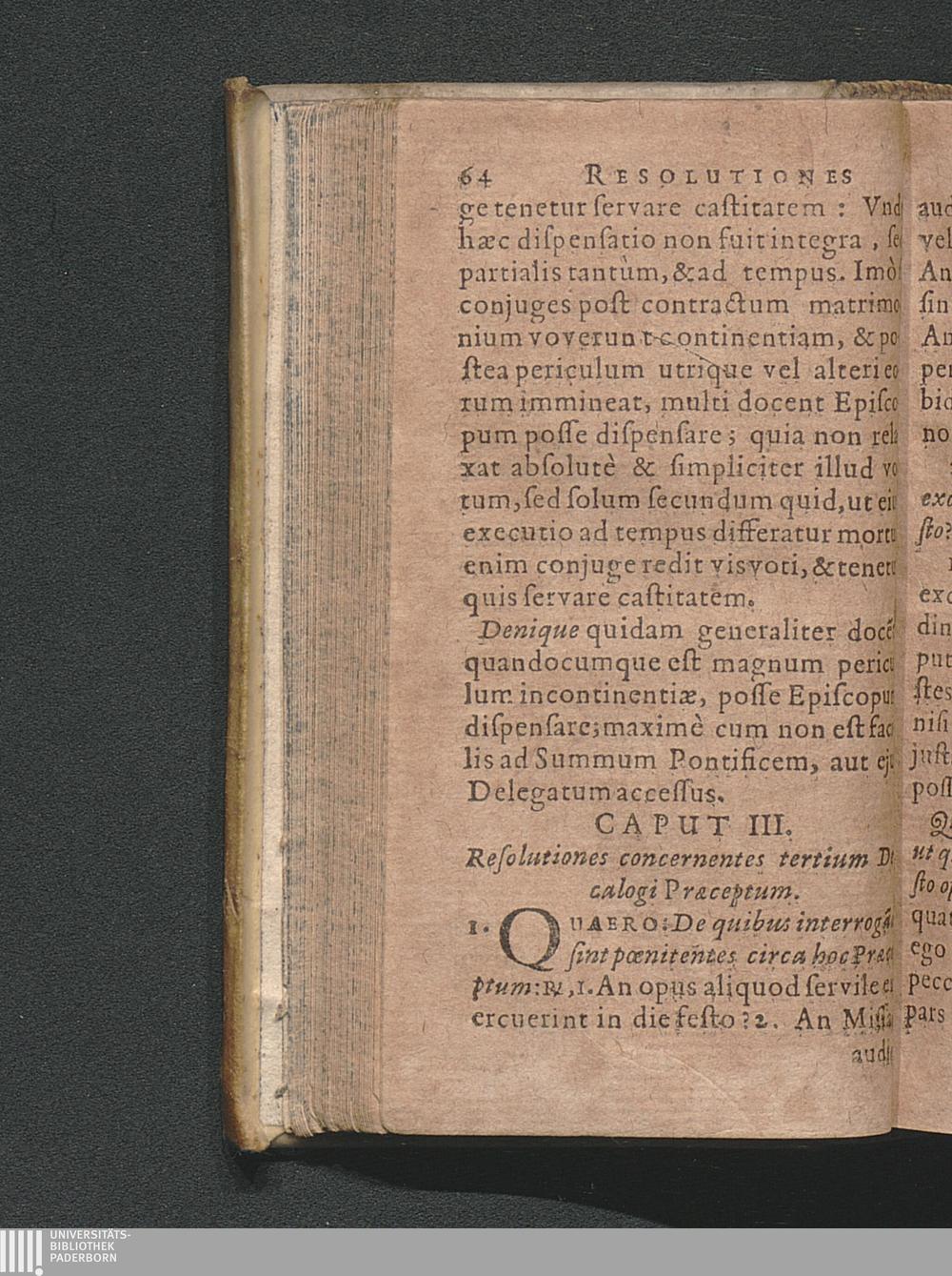 III. Resolutiones concernentes tertium Decalogi Prӕceptum