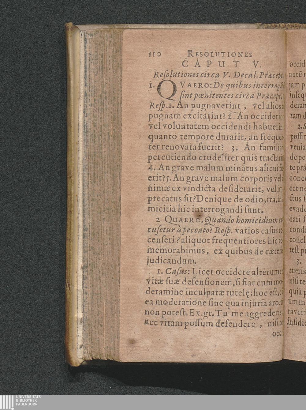 V. Resolutiones circa quintum Decalogi prӕceptum.