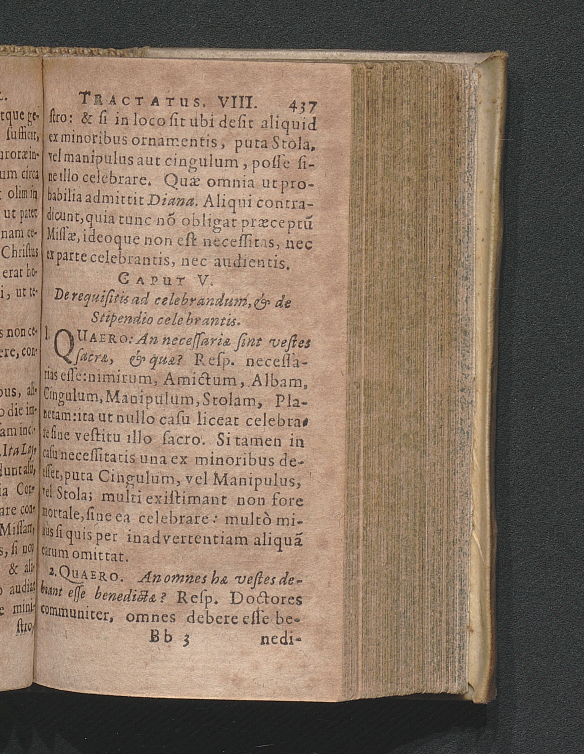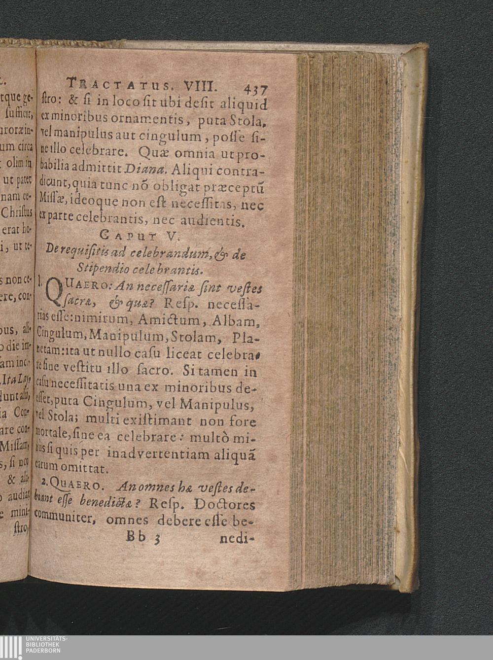 V. De requisitis ad celebrandum & de stipendio celebrantis.