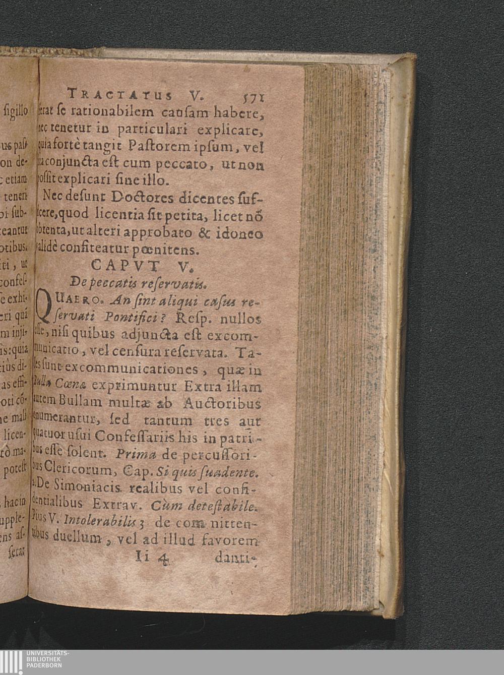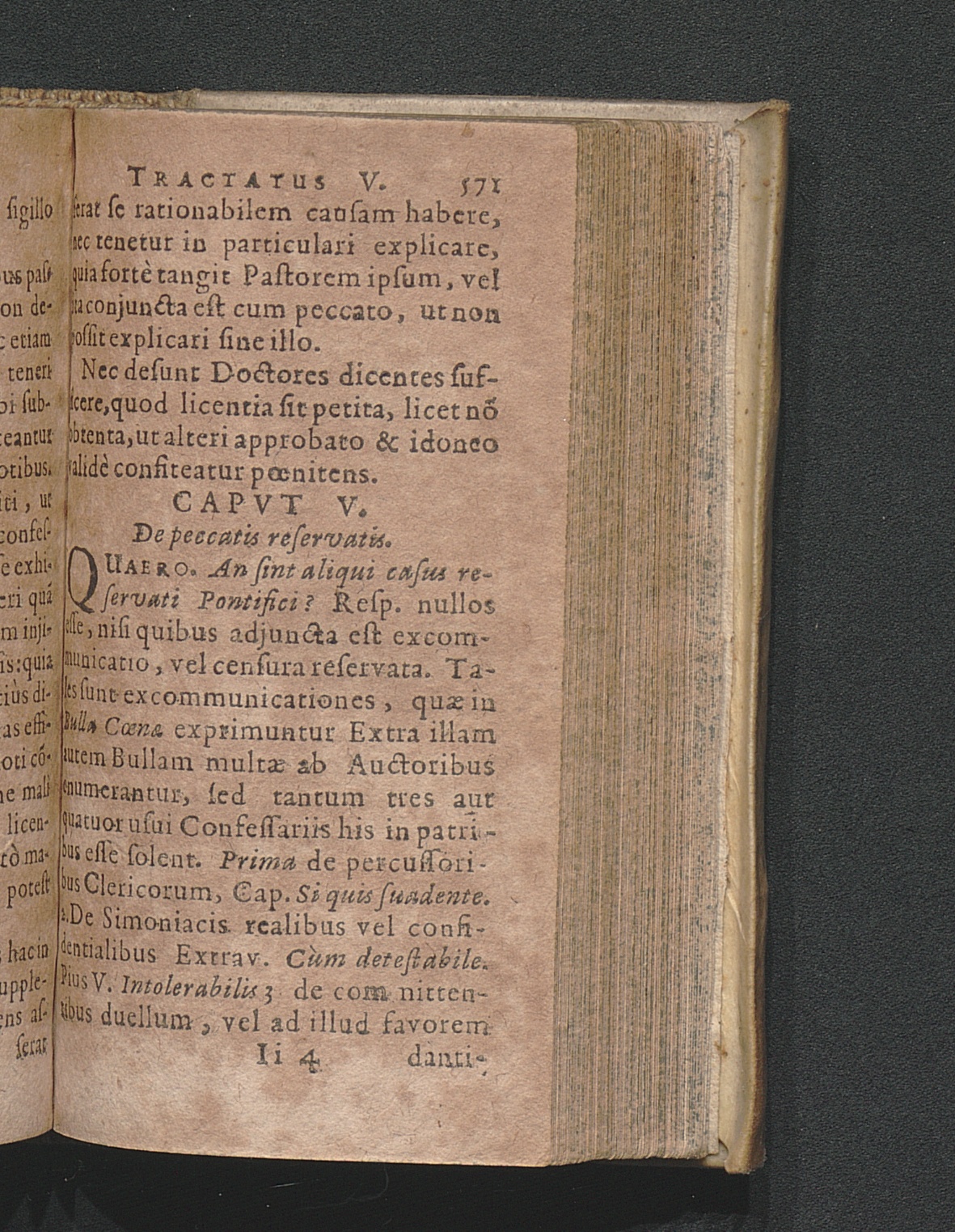 V. De peccatis reservatis.