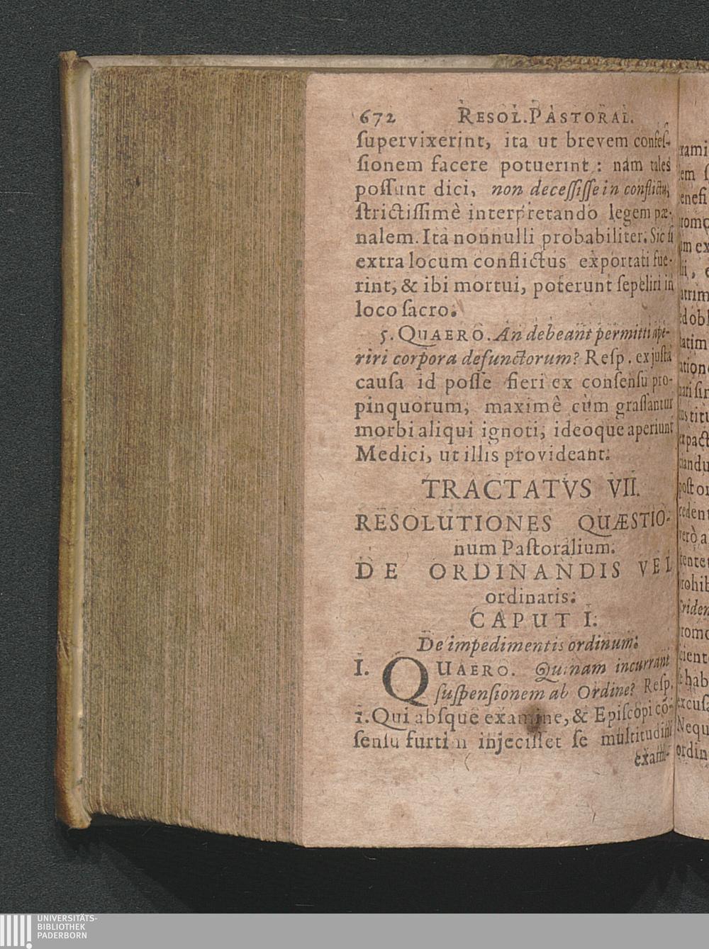 Tract. VII. Resolutiones Quӕstionum Pastoralium. De Ordinandis vel Ordinatis.