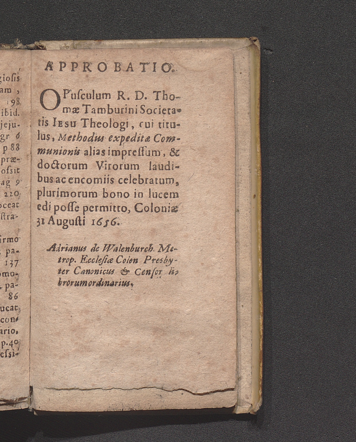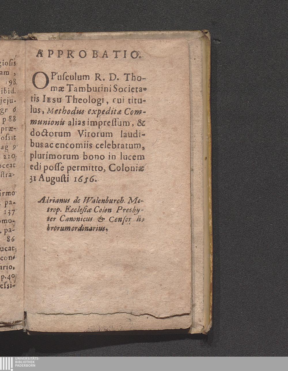 Methodvs Expeditæ Commvnionis Tum pro Sacerdotibus, tum pro omnibus fidelibus communicaturis : Liber Vnicvs ; In quo omnes ferè conscientiæ casus ad Eucharistiæ Sacramentum quà ministrandum, quà suscipiendum spectantes. breviter clareque, ac ut plurimum benignè deciduntur / P. Thomæ Tambvrini Siculi Caltanisettensis Theologi Soc. Iesu