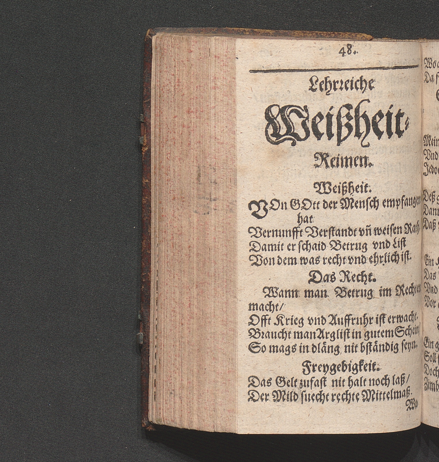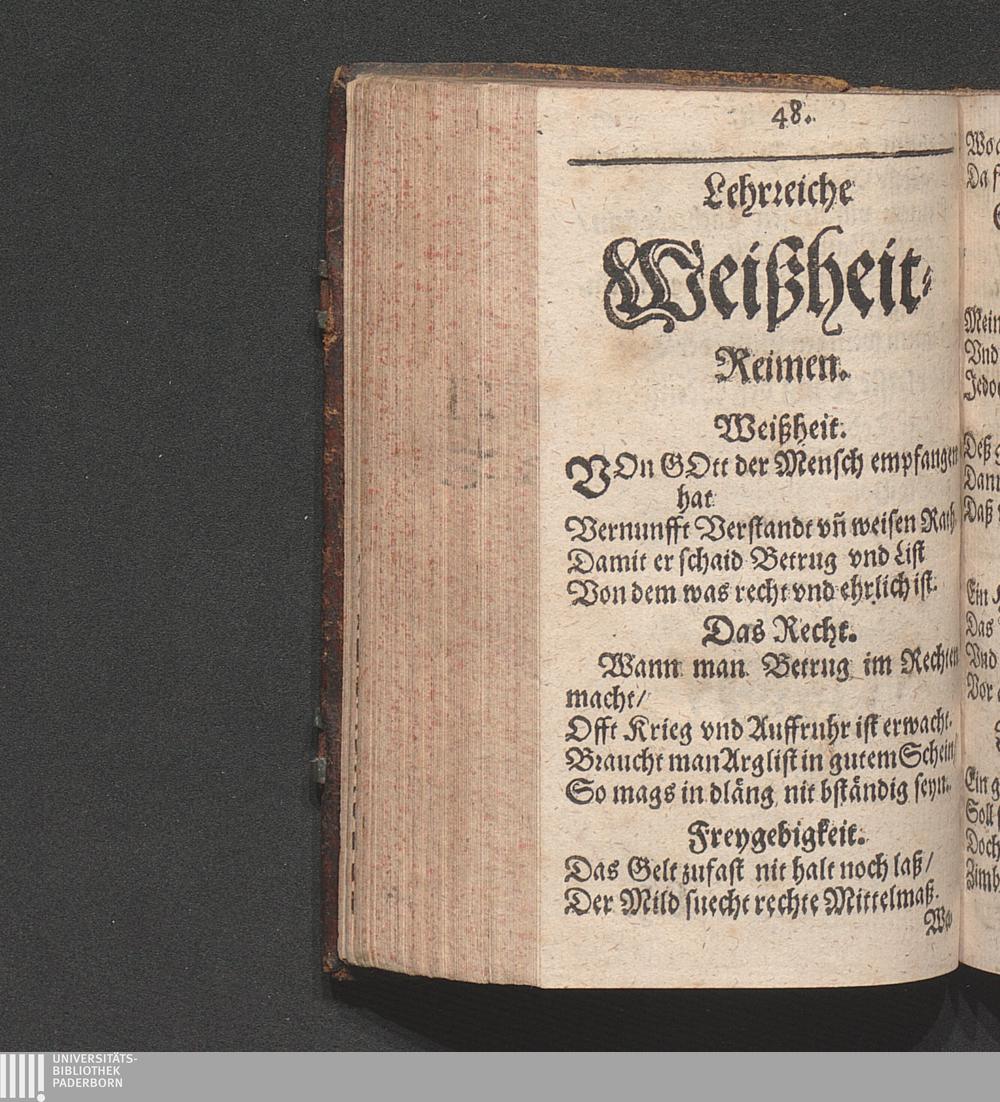 Vierfache Weißheit-Sprüch/ Vnd nutzliche Hauß-Regl : mit angehengter Jugentzucht vnd Vnderweisung guter Sitten/ [et]c. / Erstlich Auß weilund Johann Meychels hinderlassnen vnd andern bewehrten Schrifften zusamb getragen