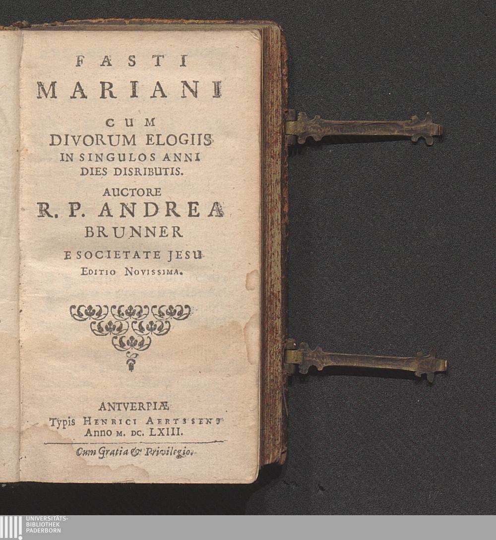 Fasti Mariani : Cum Divorum Elogiis In Singulos Anni Dies Distributis / Auctore R. P. Andrea Brunner E Societate Jesu ; [Wilhelm Pfeffer]