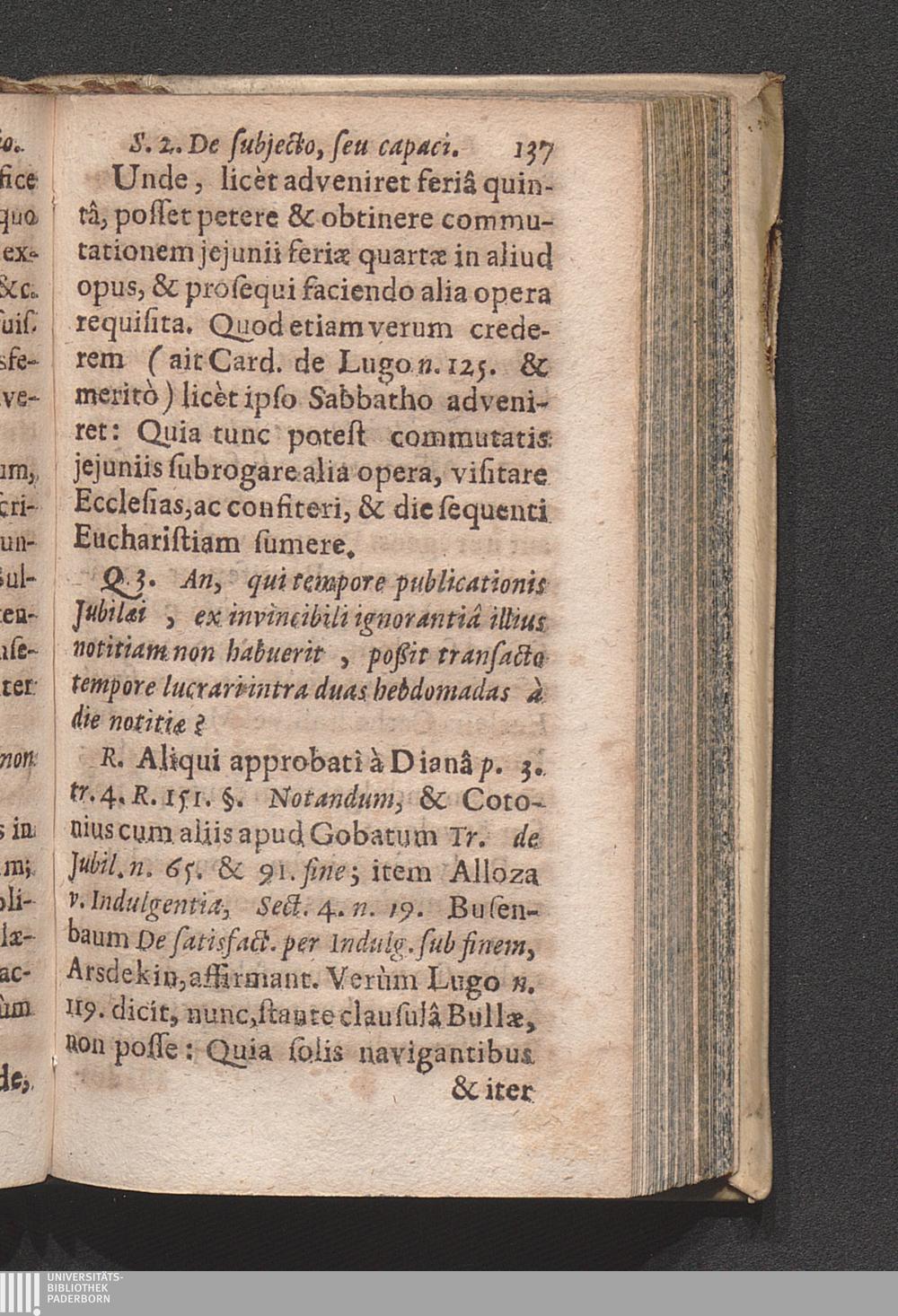 Sectio II. De Subjecto, Seu Capaci Jubilæi.