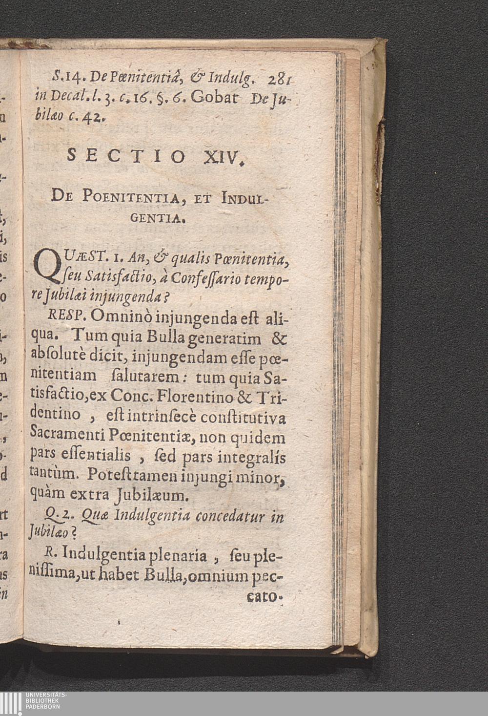 Sectio XIV. De Poenitentia Et Indulgentia.