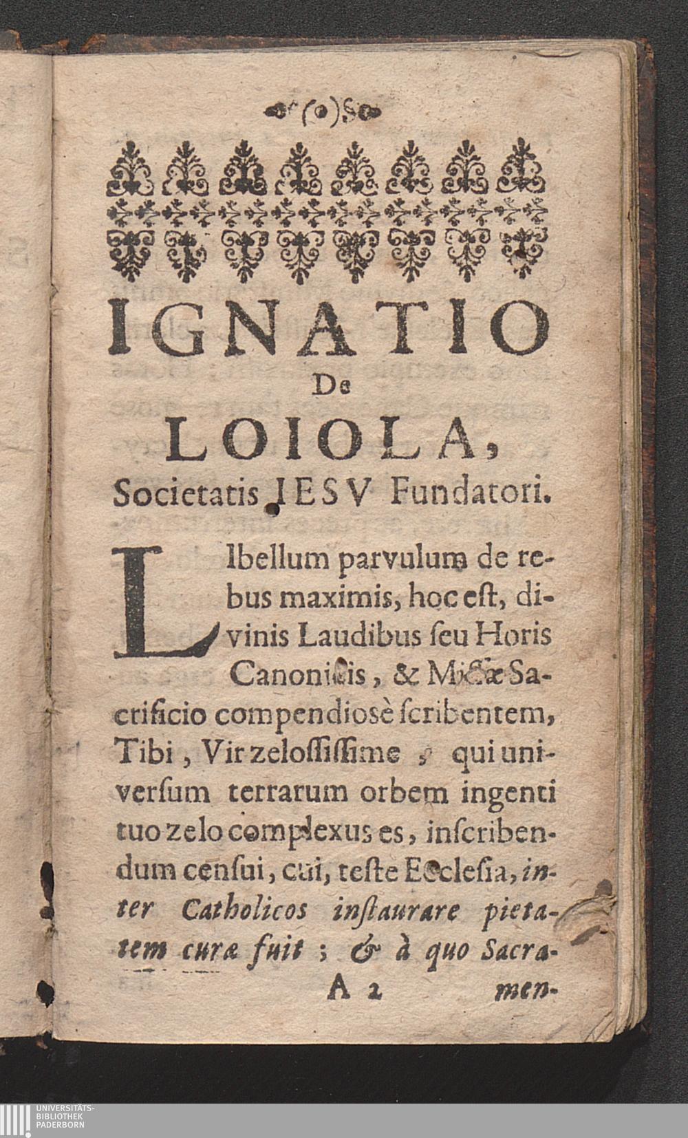 Ignatio De Loiola, Societatis Iesv Fundatori.