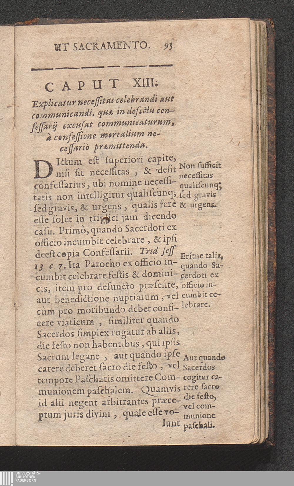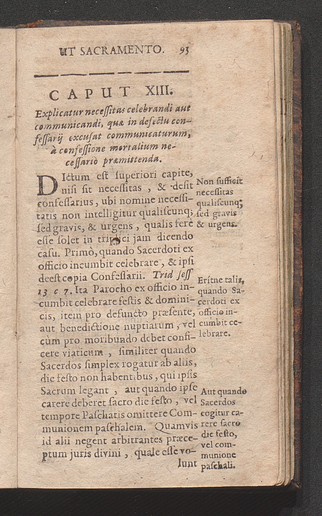Caput XIII. Explicatur necessitas celebrandi aut communicandi, quæ in defectu confessarij[...]