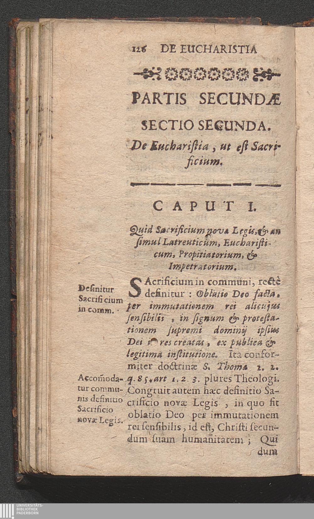 Partis Secundæ Sectio Secunda. De Eucharistia, ut est Sacrificium.