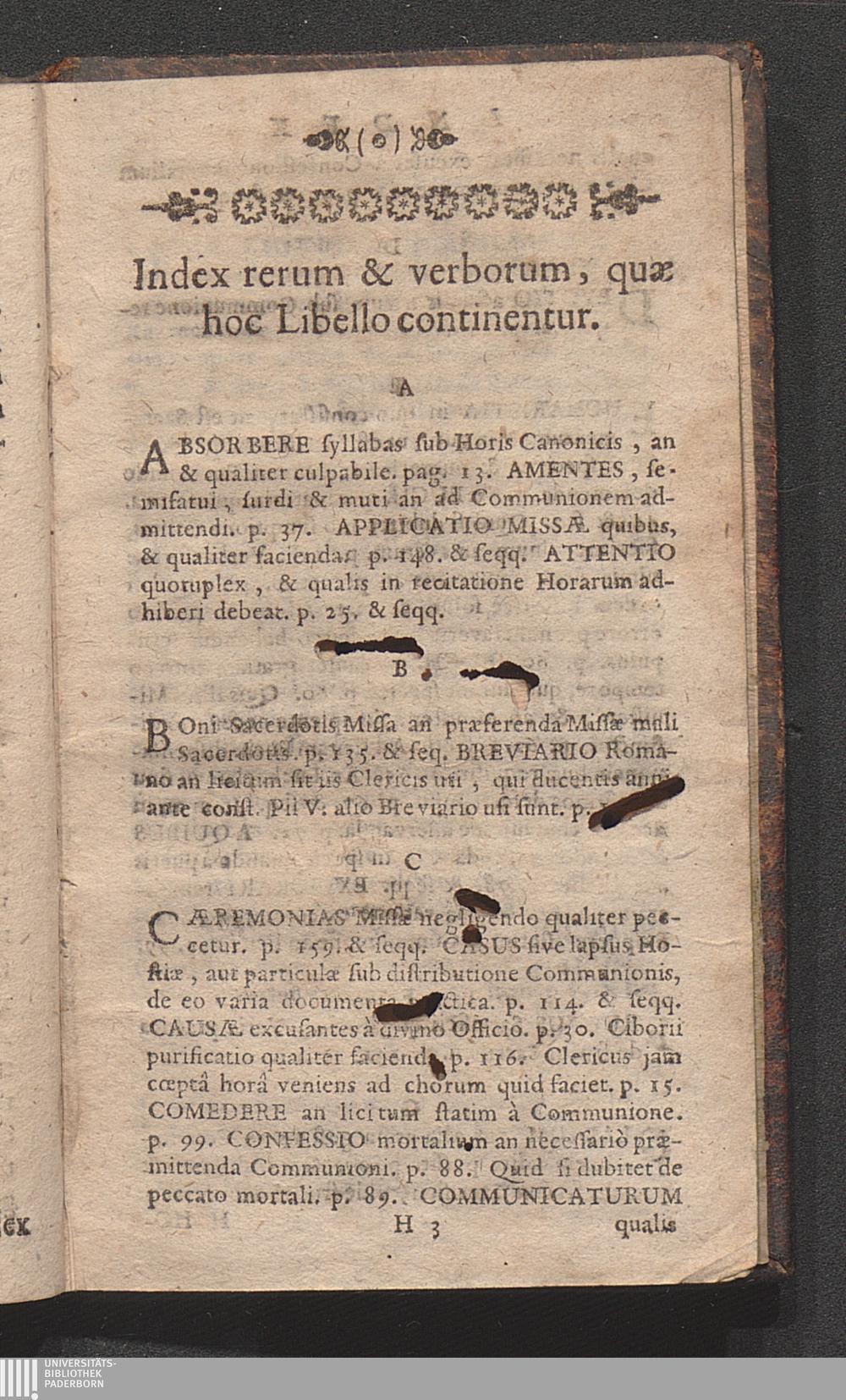 Index rerum & verborum, quæ hoc Libello continentur.